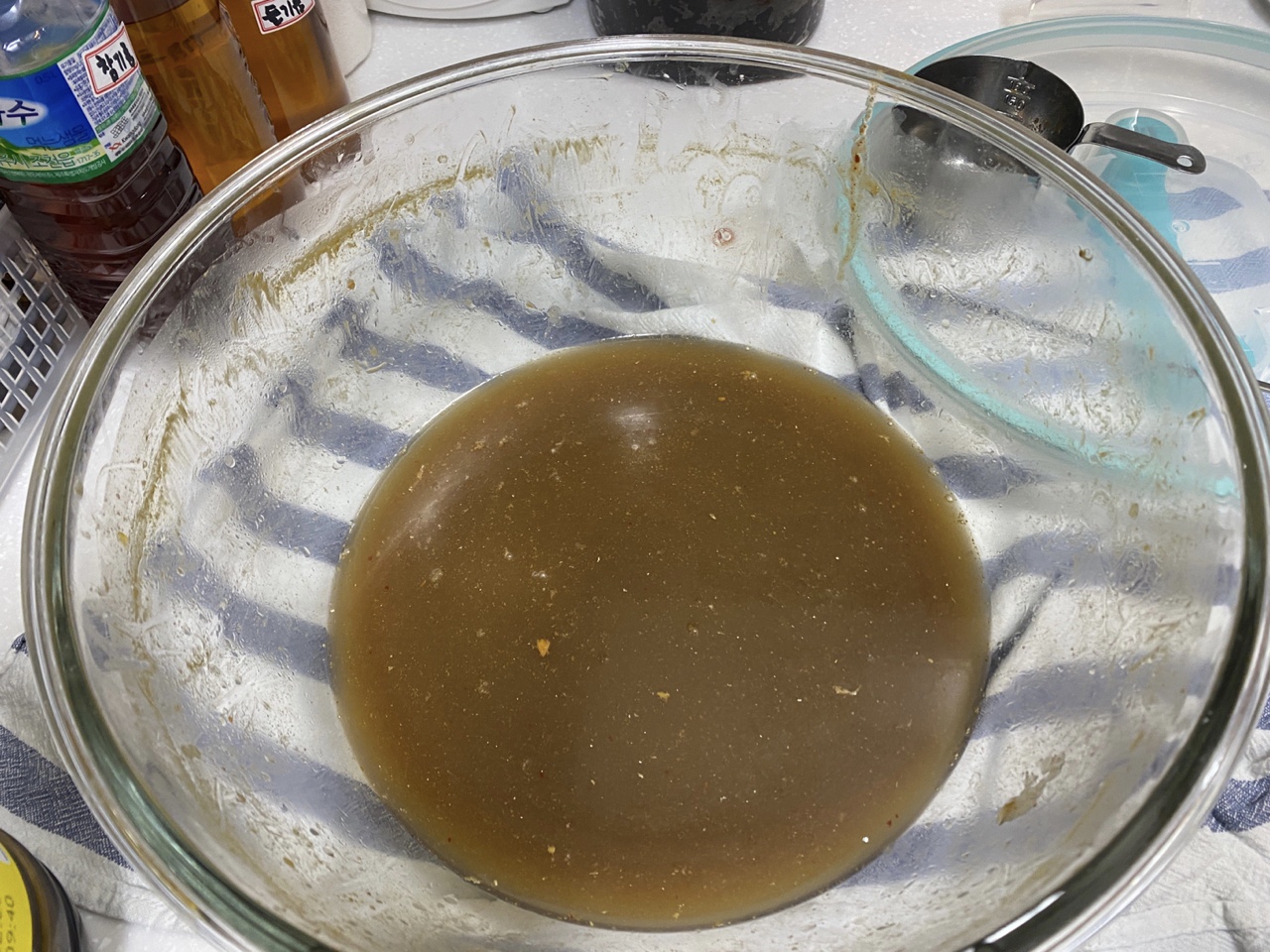 그리고 위 양념을 10배합 했나? 암튼 양념 만들어서 맛을 봐 가면서 담궜다.
