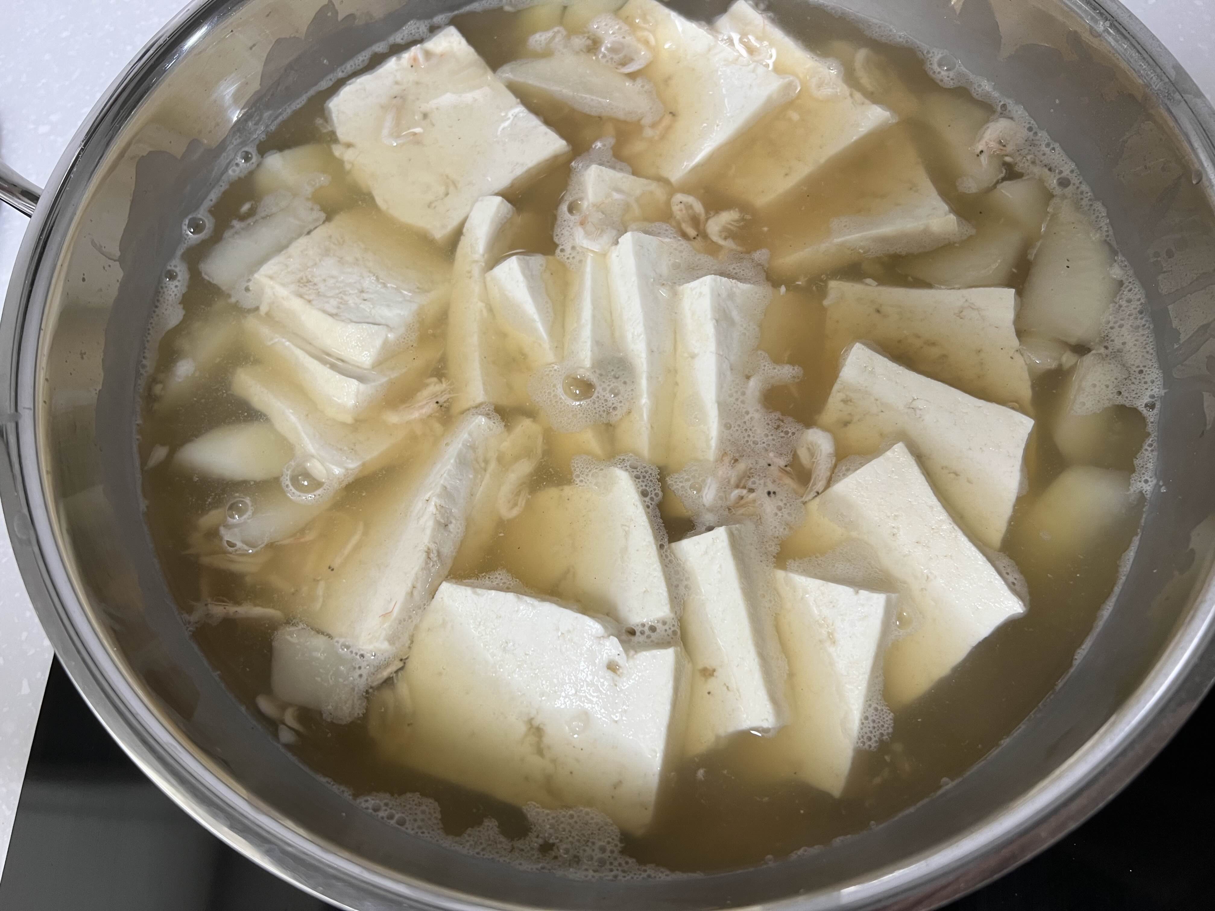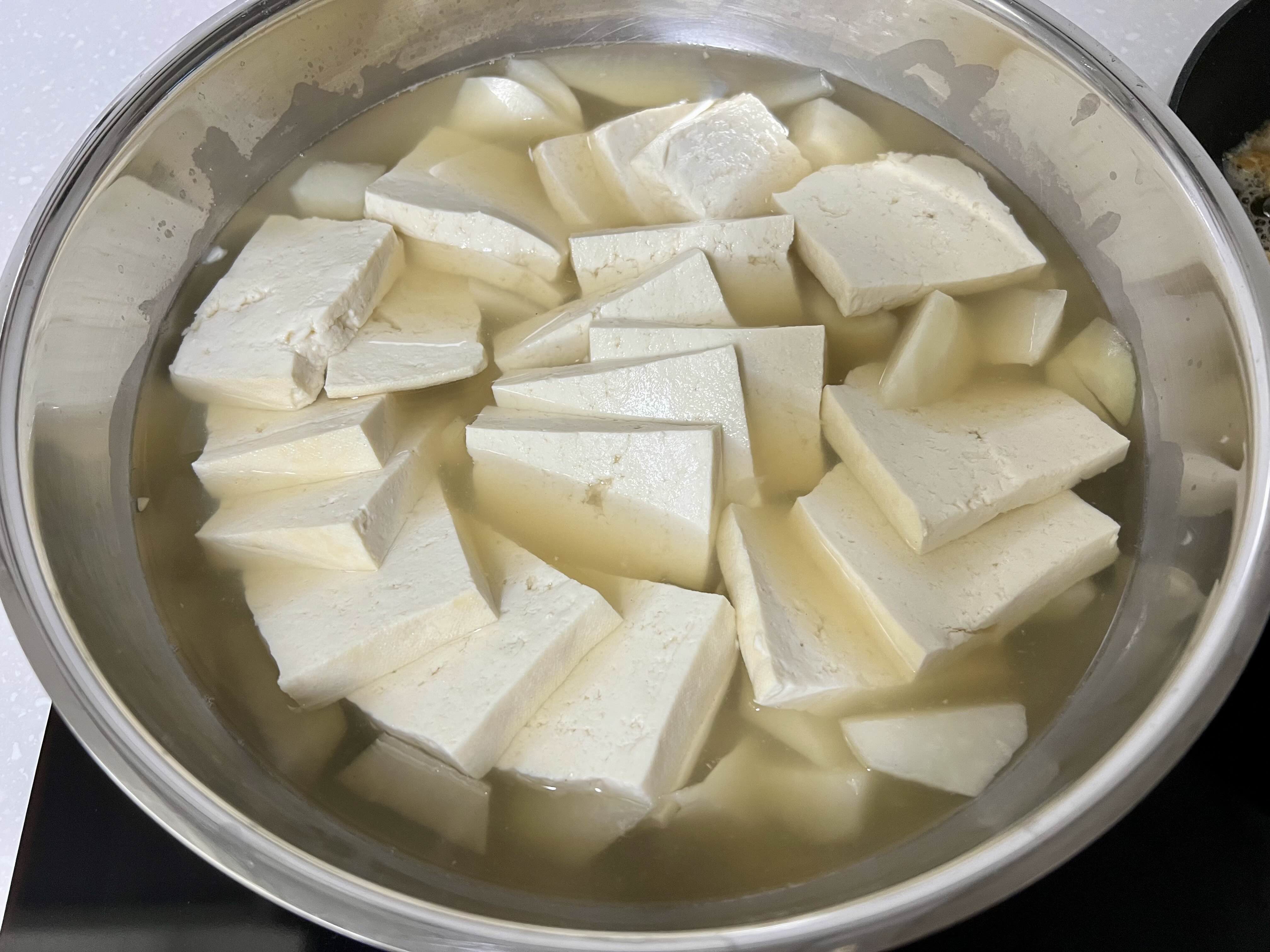 전 날 다싯물에 두부를 넣고 한 5분 끓인 후 밤새 둔다.