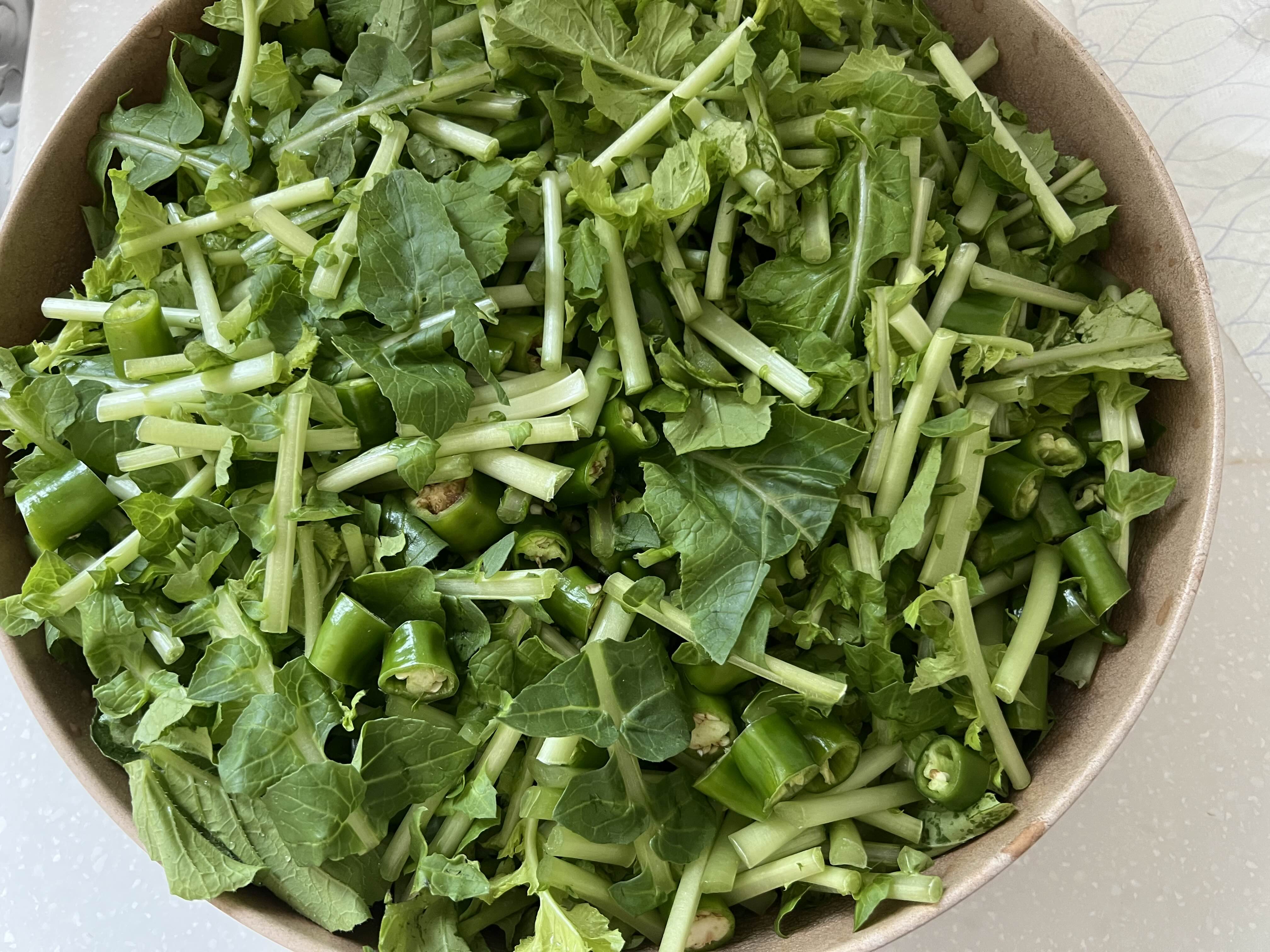 숭덩숭덩 열무를 한 입 크기로 썰어서 피클물을 부어 준다.