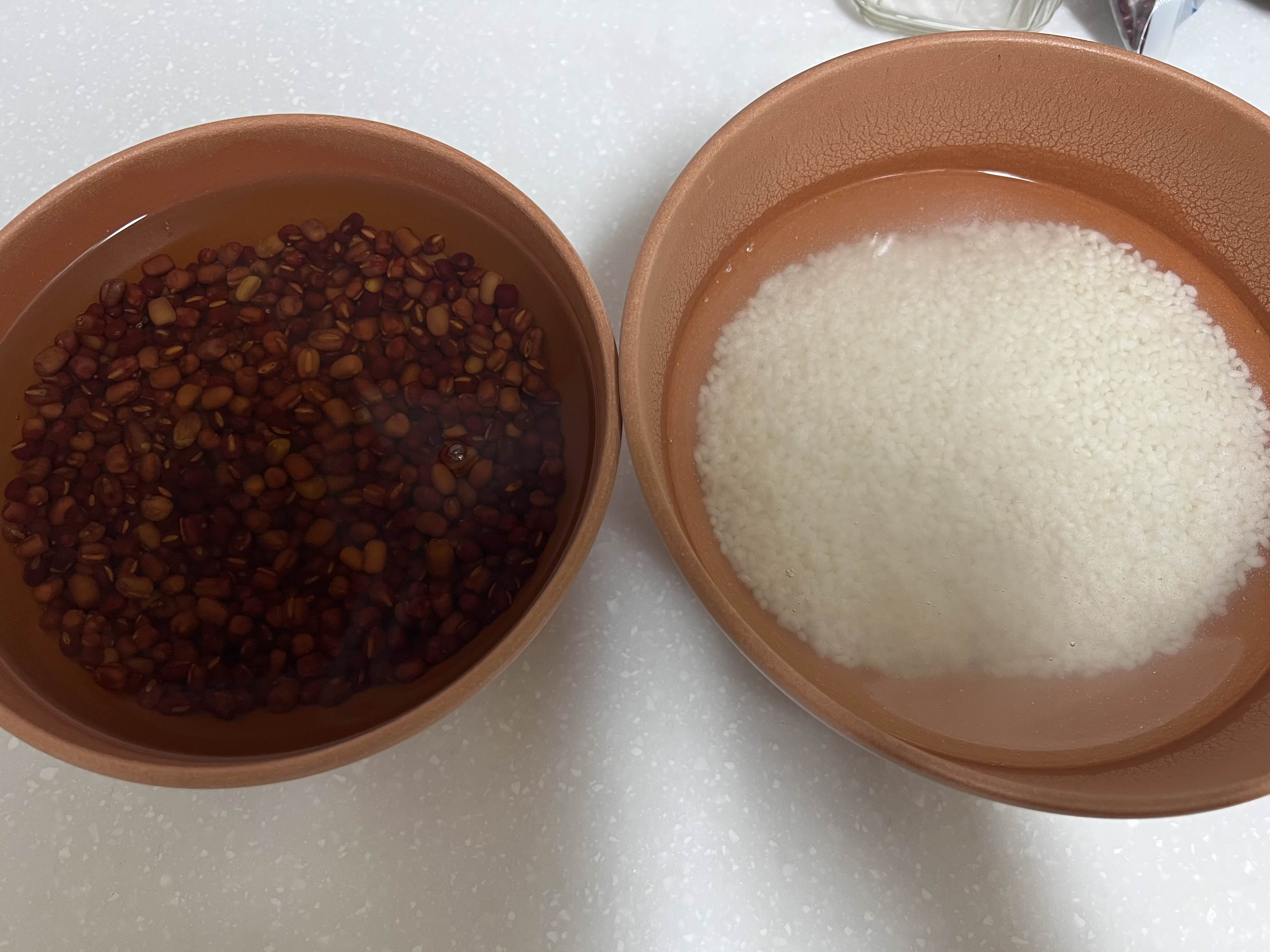 팥과 찹쌀을 불려 두고
