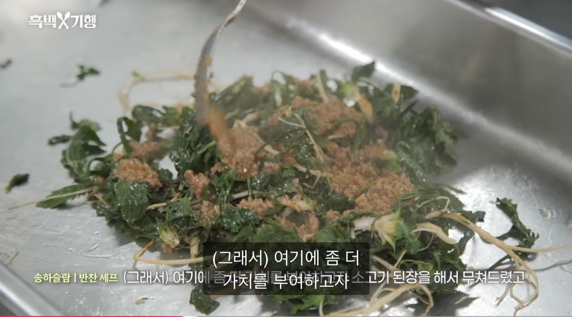 냉이 나물을 소고기 된장으로 무쳤다고 한다.