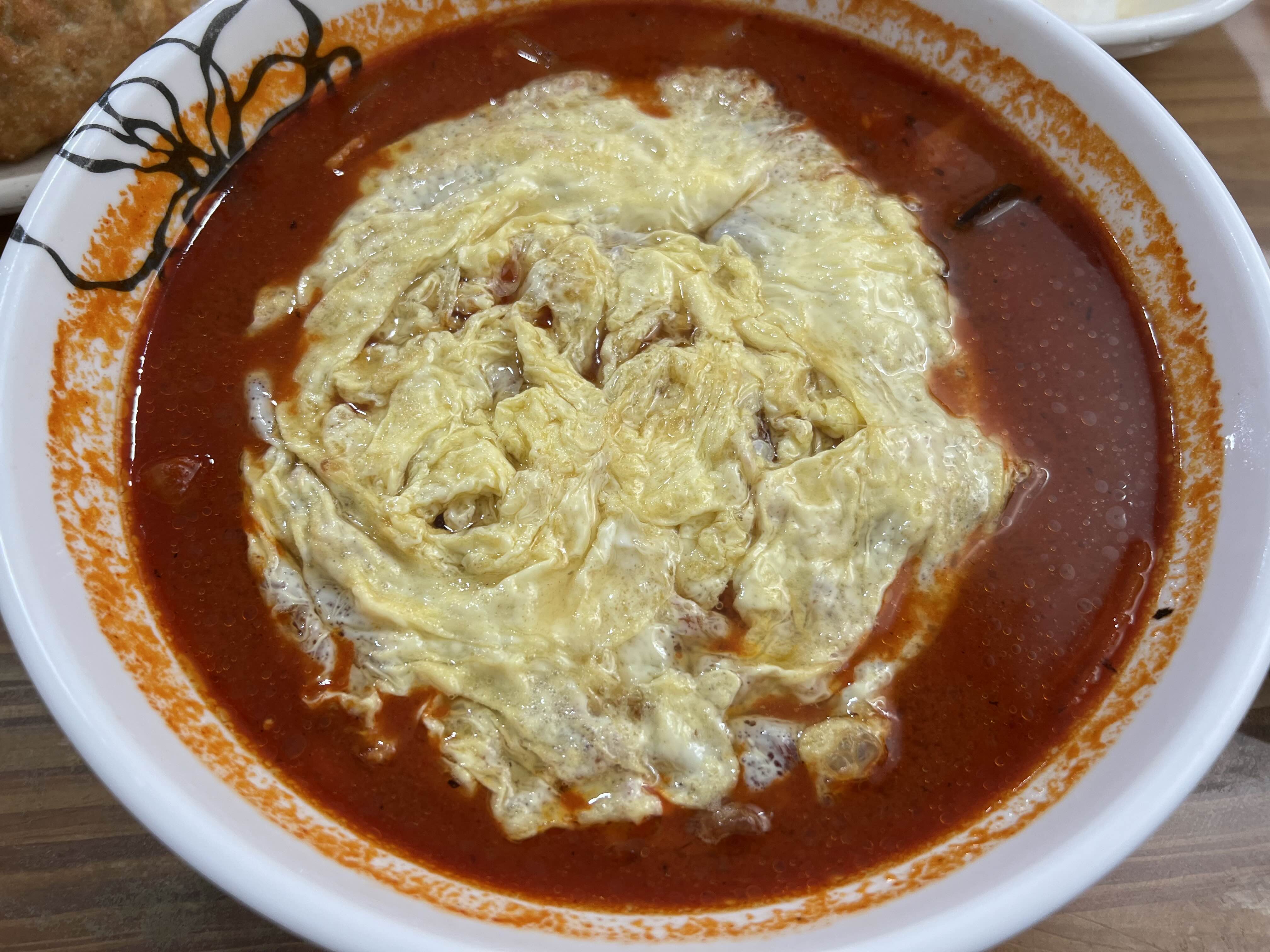 근데 달걀은 국물에 푼 것이 아니라 튀기듯 구운 것(?)을 전처럼 통째로 올린 스타일이었다.