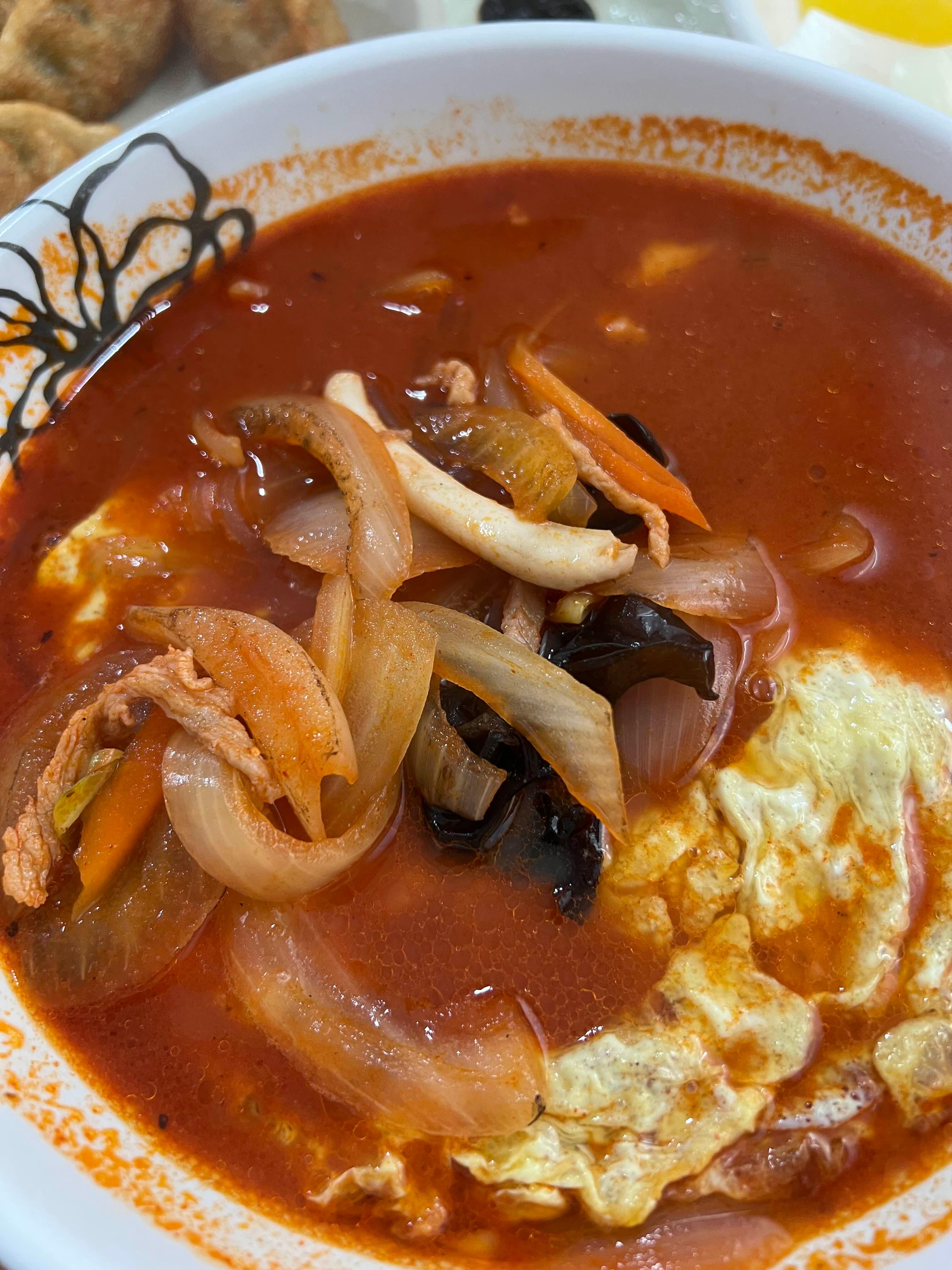 국물을 뜨니, 일명 불향이 너무 강하고 맛이 진했다.