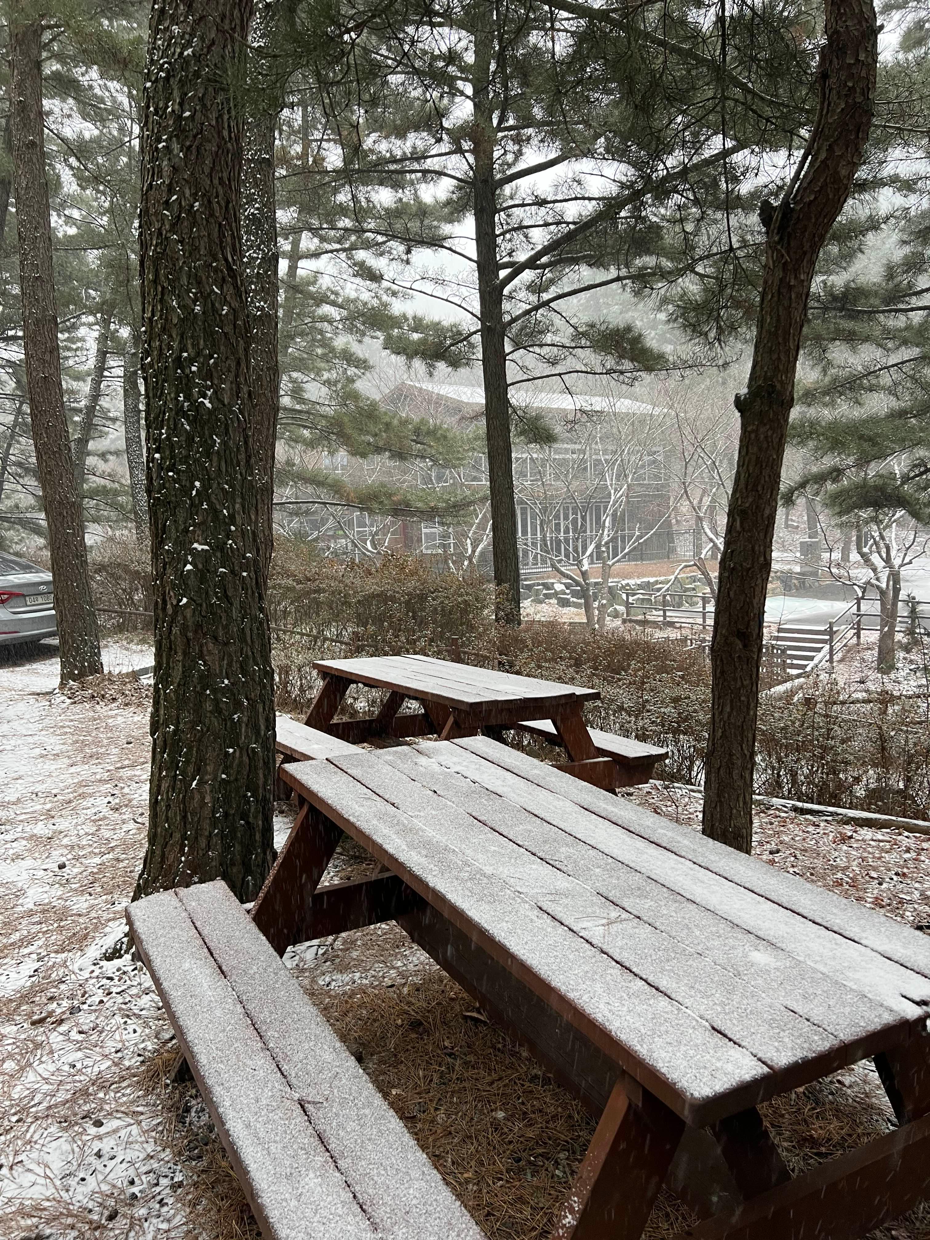 희리산 자연휴양림으로 오니 눈이 내린다