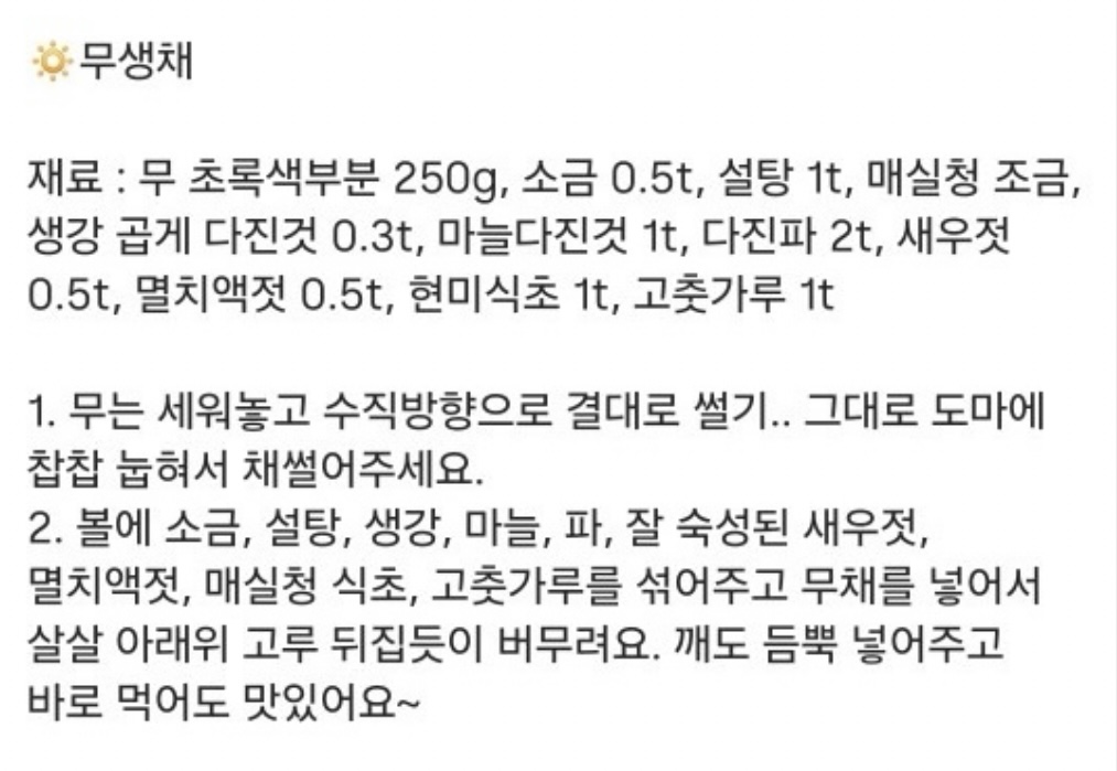 무생채는 이걸로 정착하려고 한다