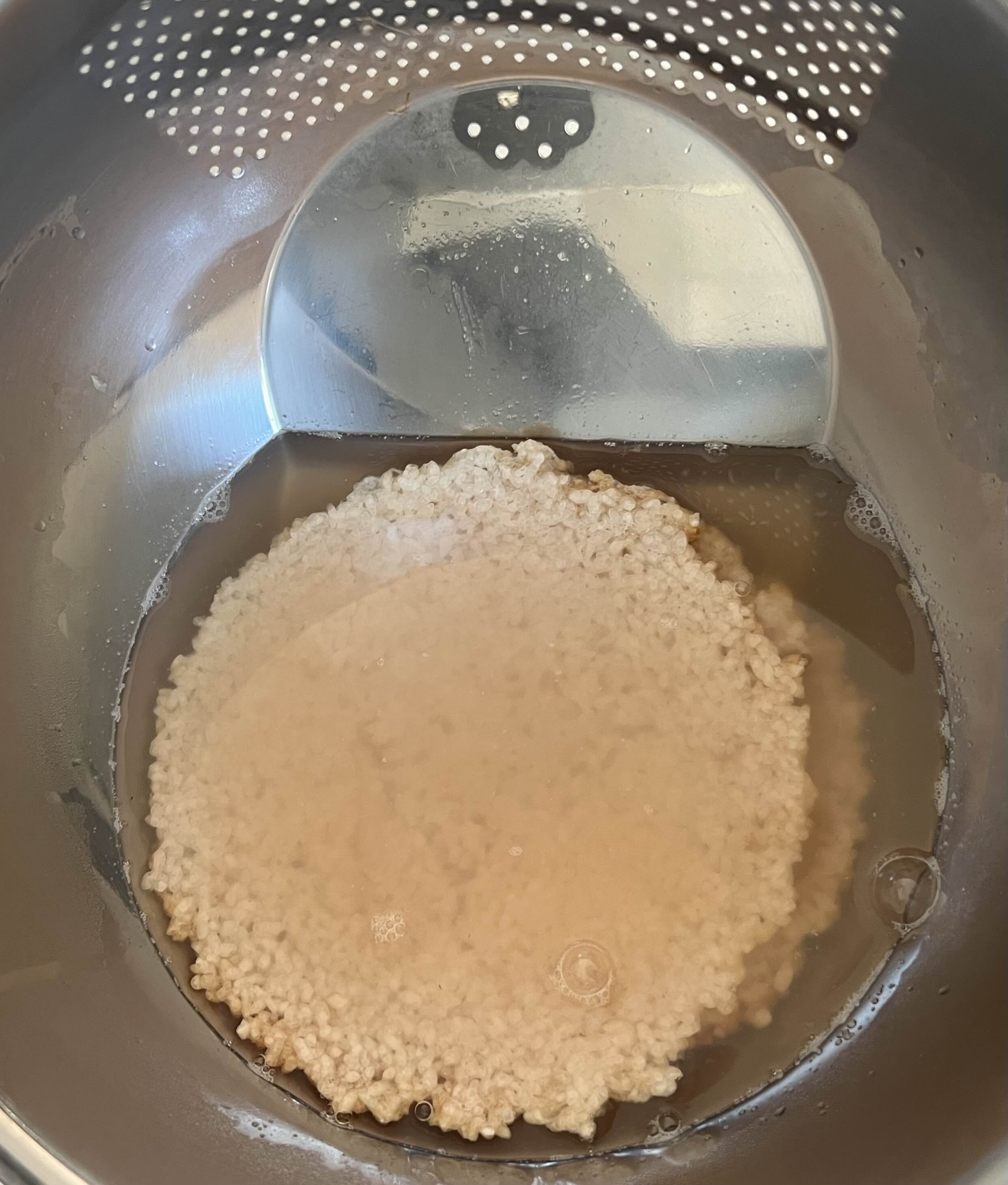 육수 내고 뜨거운 육수에 누룽지 불려 두기