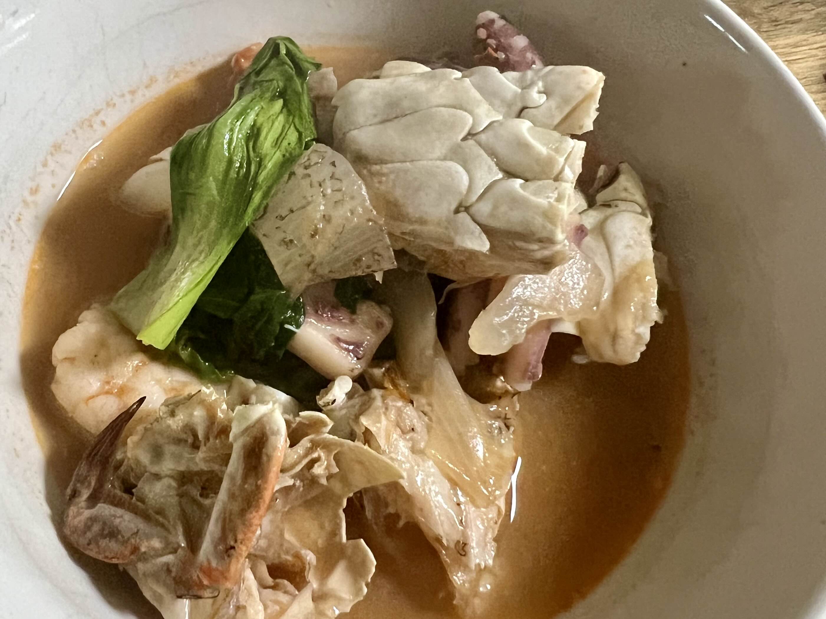 백짬뽕인데 대하 대가리 모아 둔 걸로 육수를 냈더니 붉어졌다