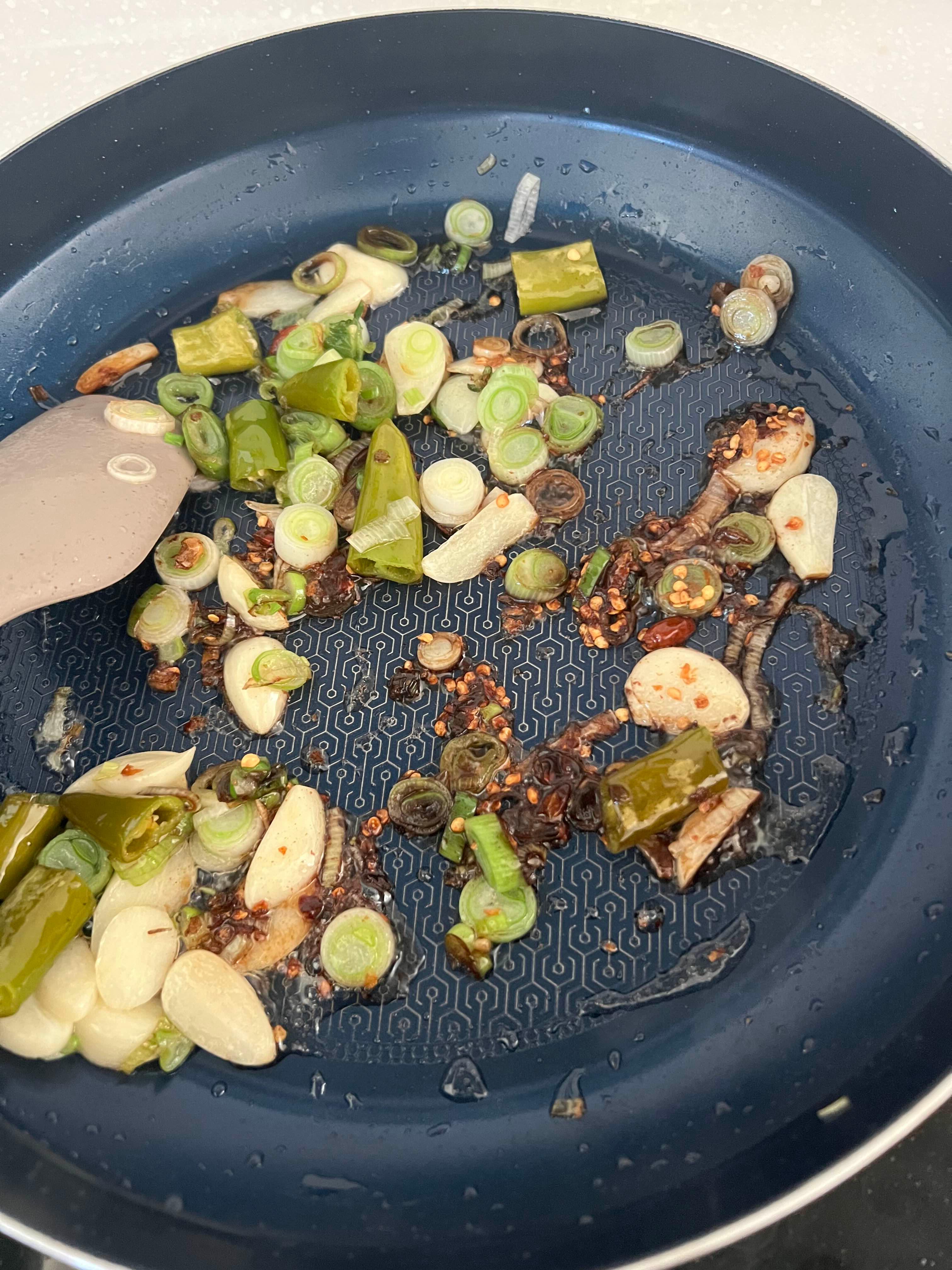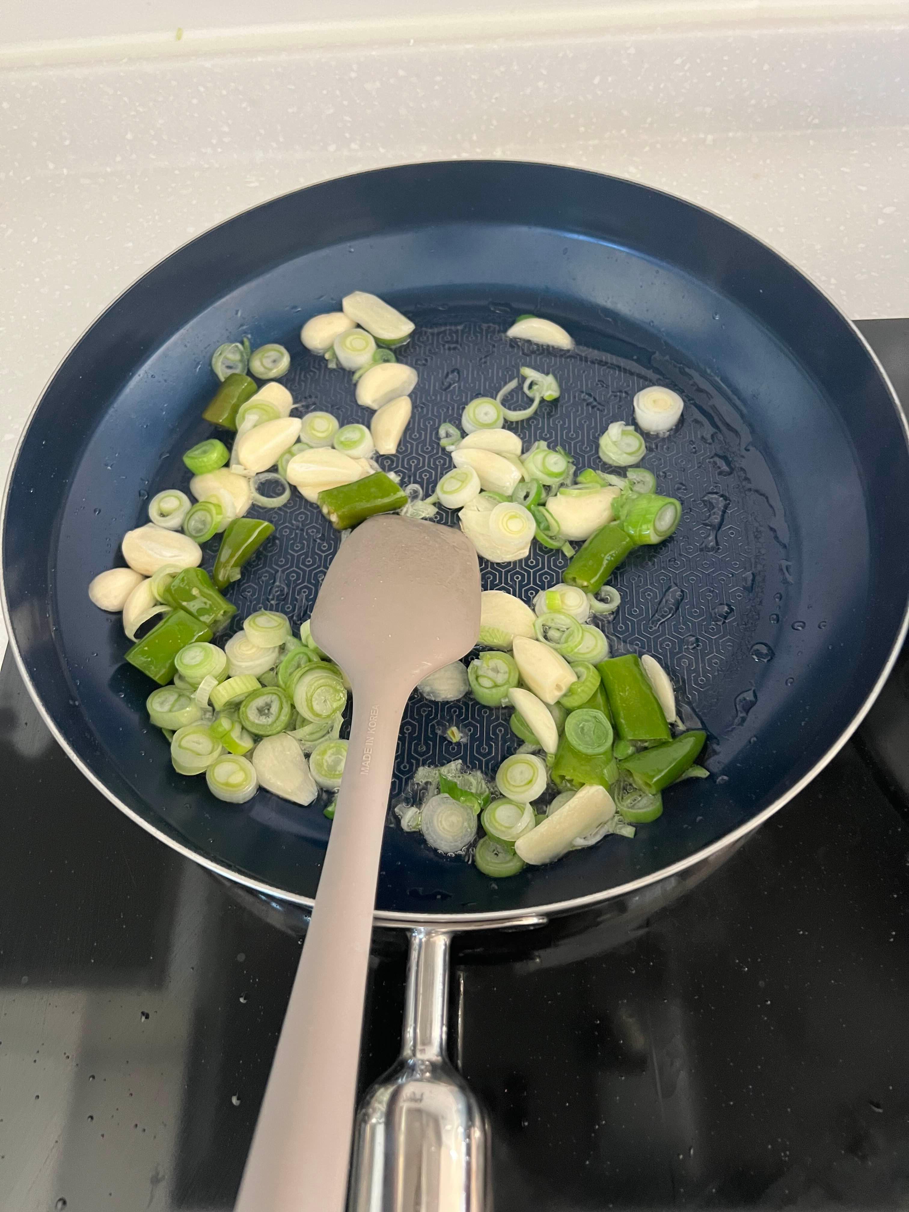 파 마늘 기름 내며 볶다가