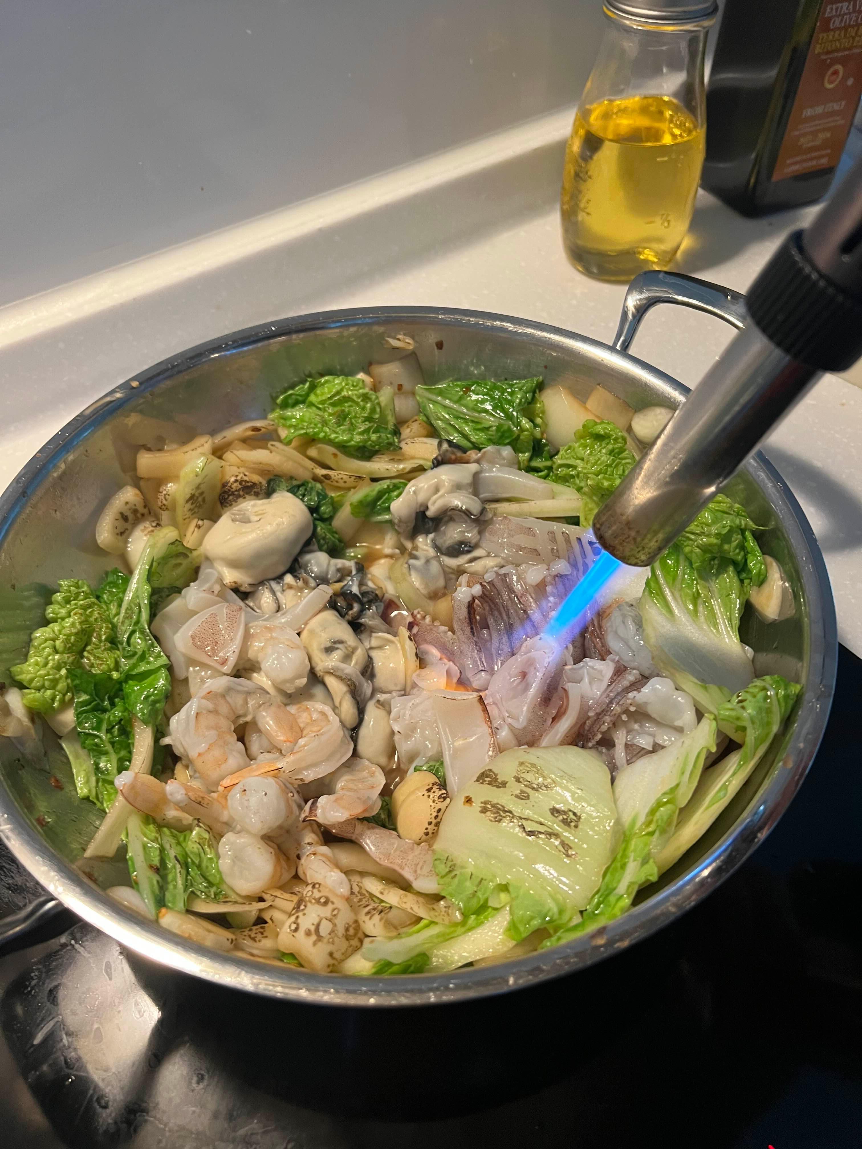 토치로 지진 불향으로 낸 해물 백짬뽕이다.