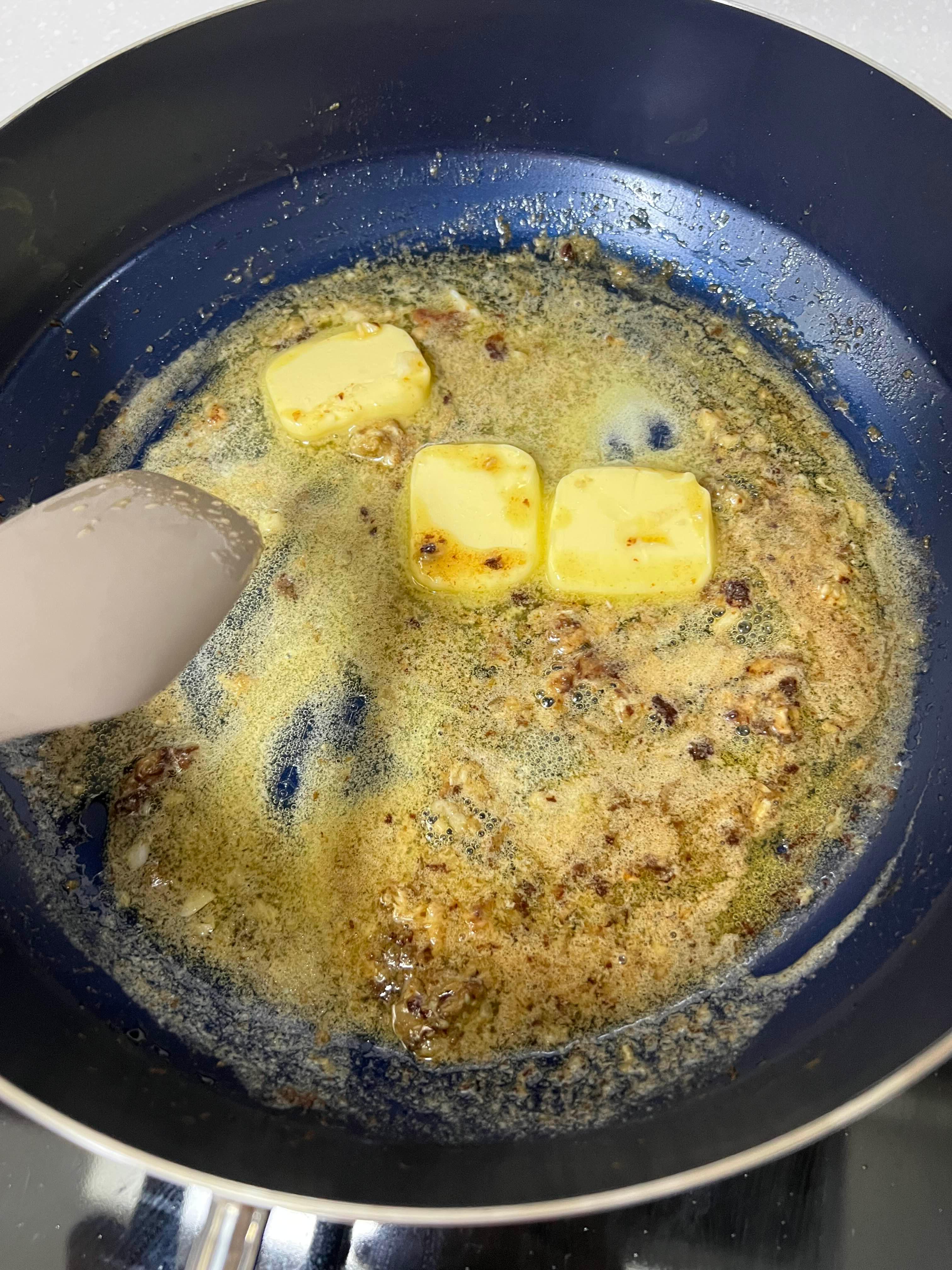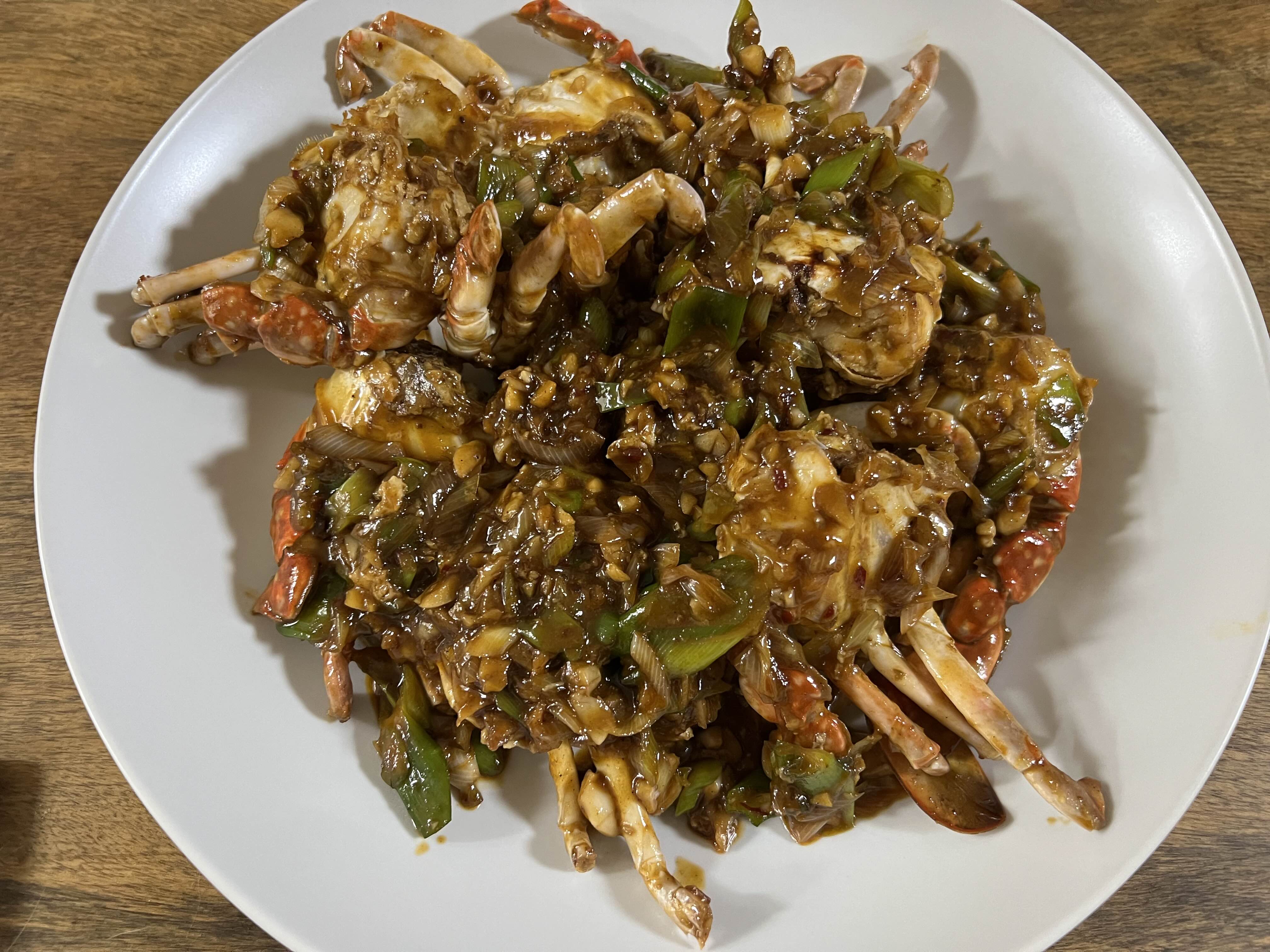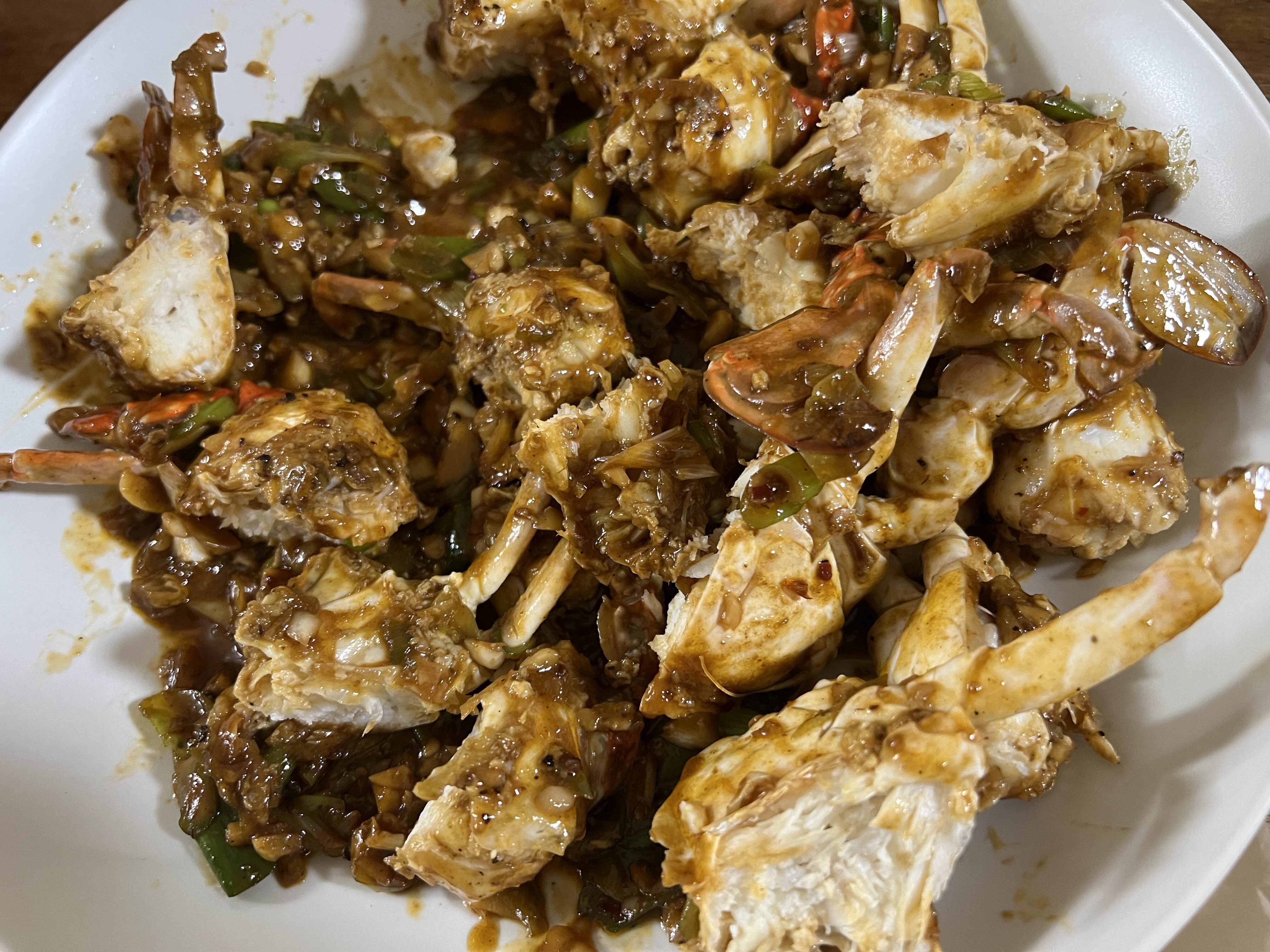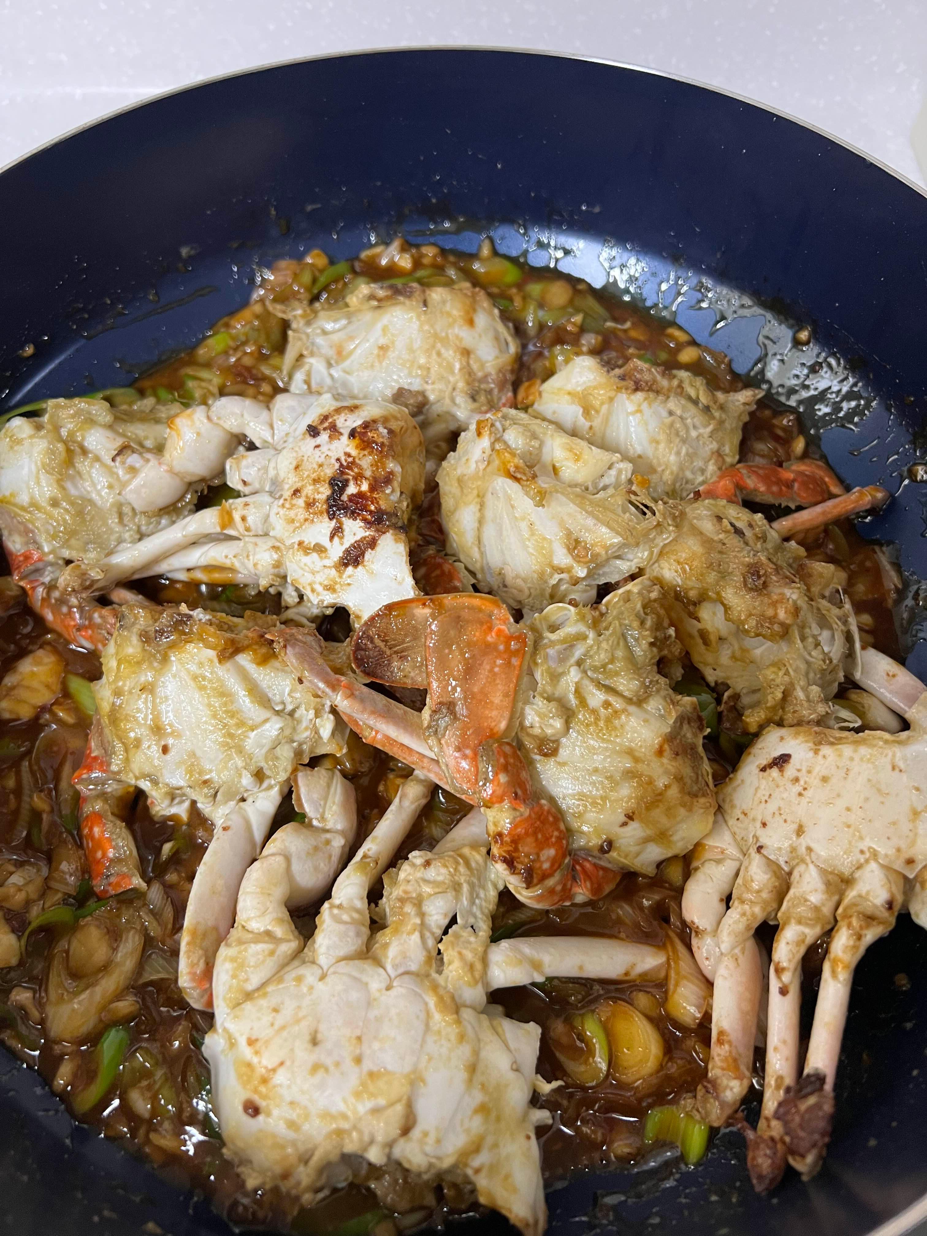 냉동실에서 꺼내 (겨울 기준) 1시간 정도 실온에 둔 게를 기름 두르고 굽는다
