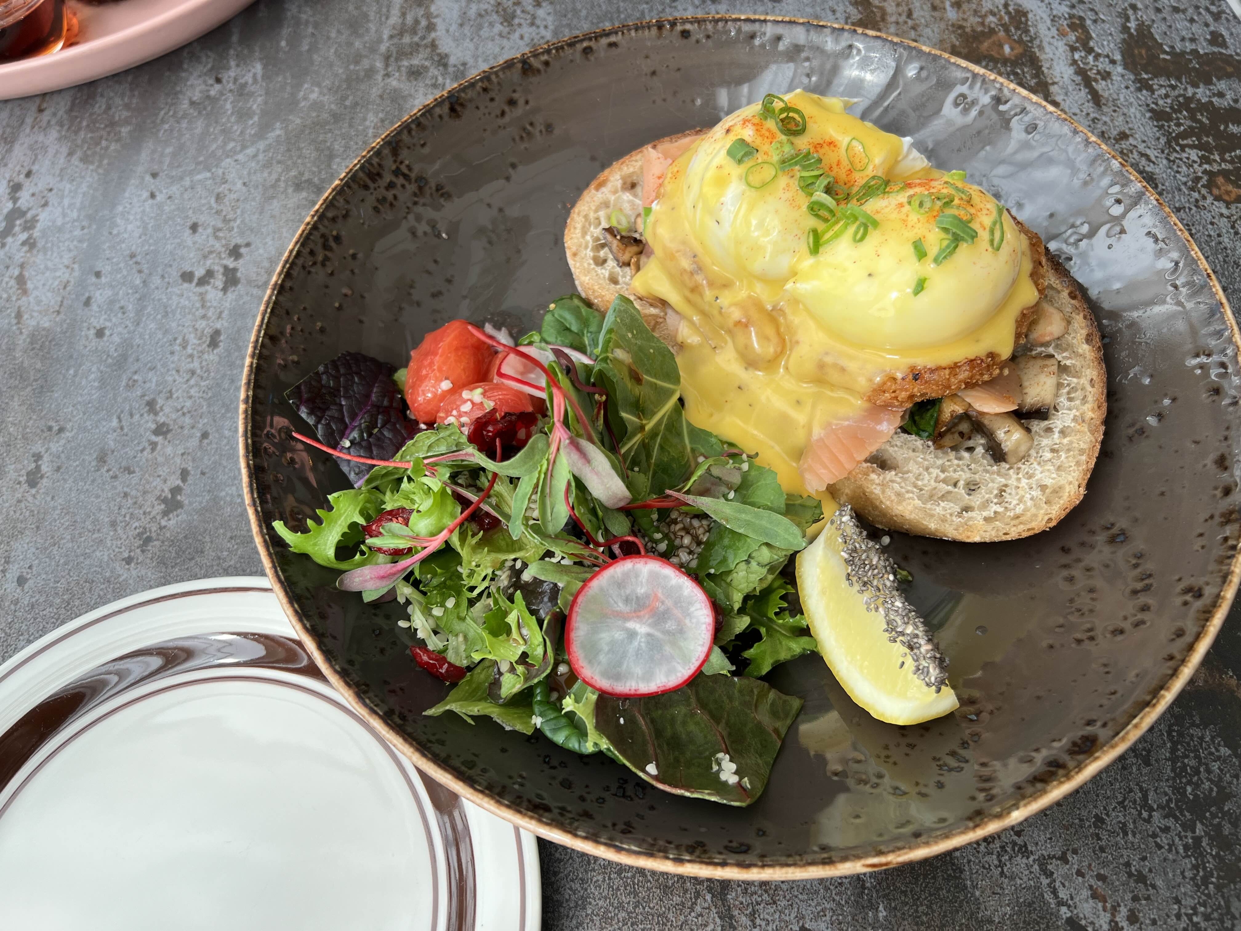 나는 에그 베네딕트 먹고 친구는 나를 위해 프렌치 토스트를 주문 (내가 지나가는 소리로 프렌치 토스트 먹고 싶다고 해서 ㅠㅡㅠ)