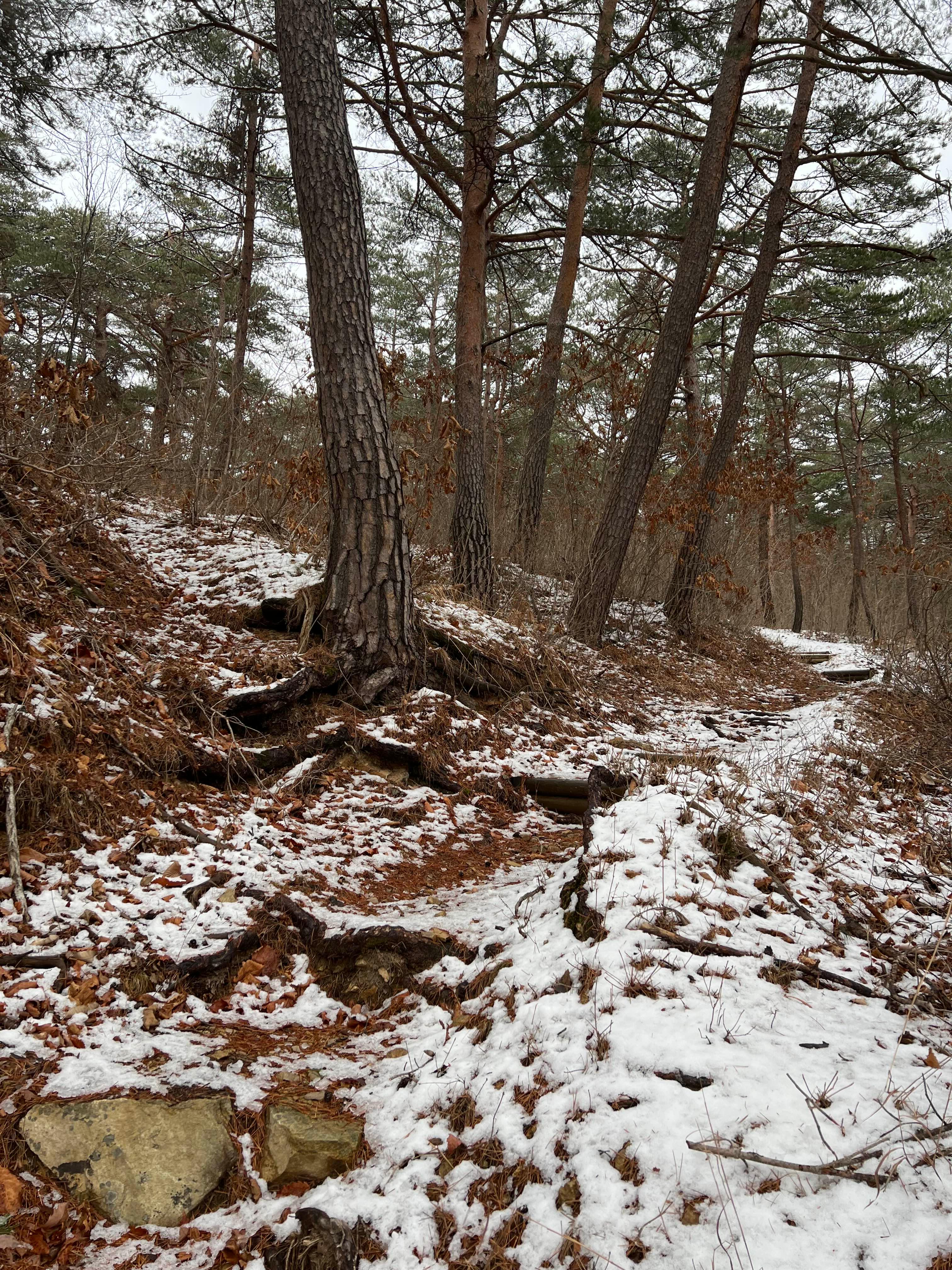 3월초라 눈이 녹아 등로에 진흙이 많은데 이게 너무 미끄러워 고생을 하는 구간이 있다.