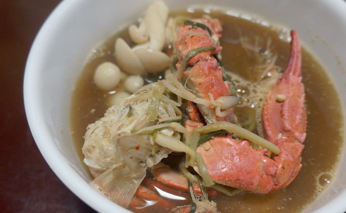 고추장물, 가지밥, 꽃게 된장찌개, 함박 스테이크