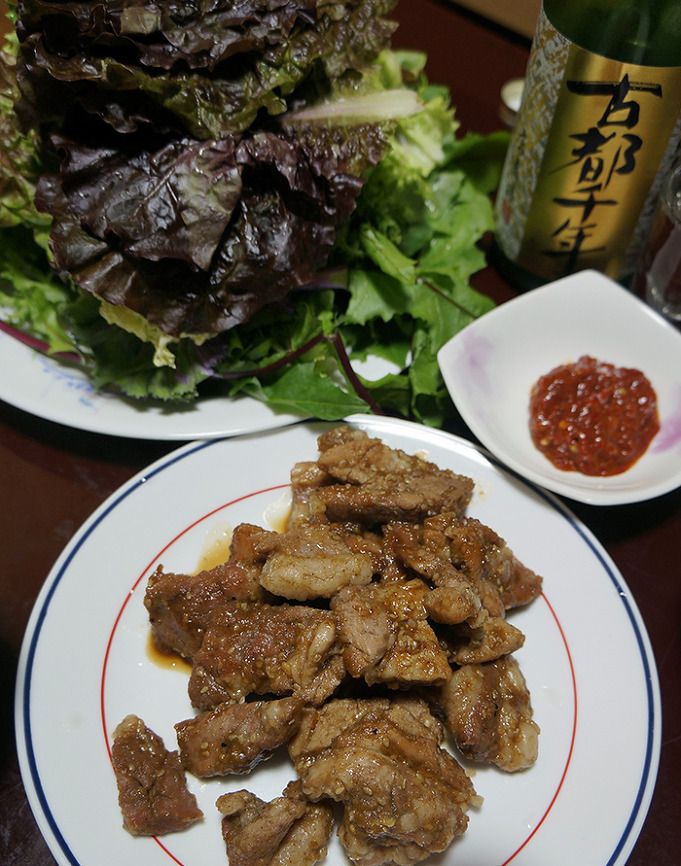 돼지갈비와 상추쌈.