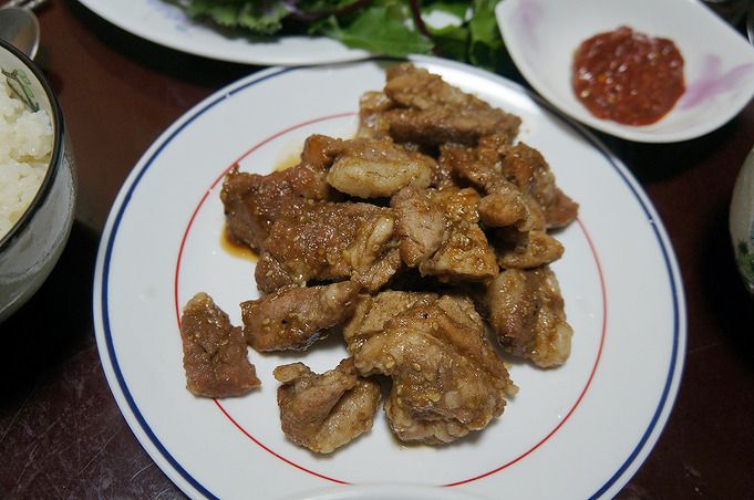 더 진한 색이면 좋겠지만, 배가 고파서 갈비가 익자마자 꺼내 먹었던 것 같다.