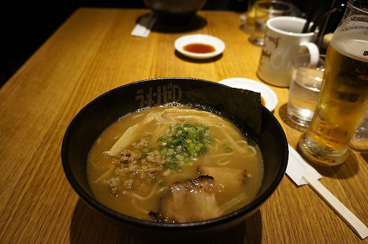 라멘은 오뎅 국물 맛이어서 실망스러웠고, 흑돼지로 만들었다는 교자는 여지껏 먹어 본 만두나 교자 중에서 가장 맛있는 것이었다. 맥주도 맛있었다.