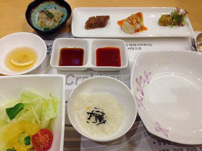아래 쪽의 죽과 간단한 샐러드.