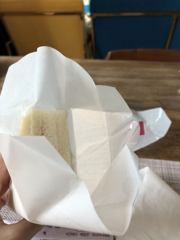 식빵 테두리 자른 듯한 샌드위치 빵은 포송포송 푹신하다.