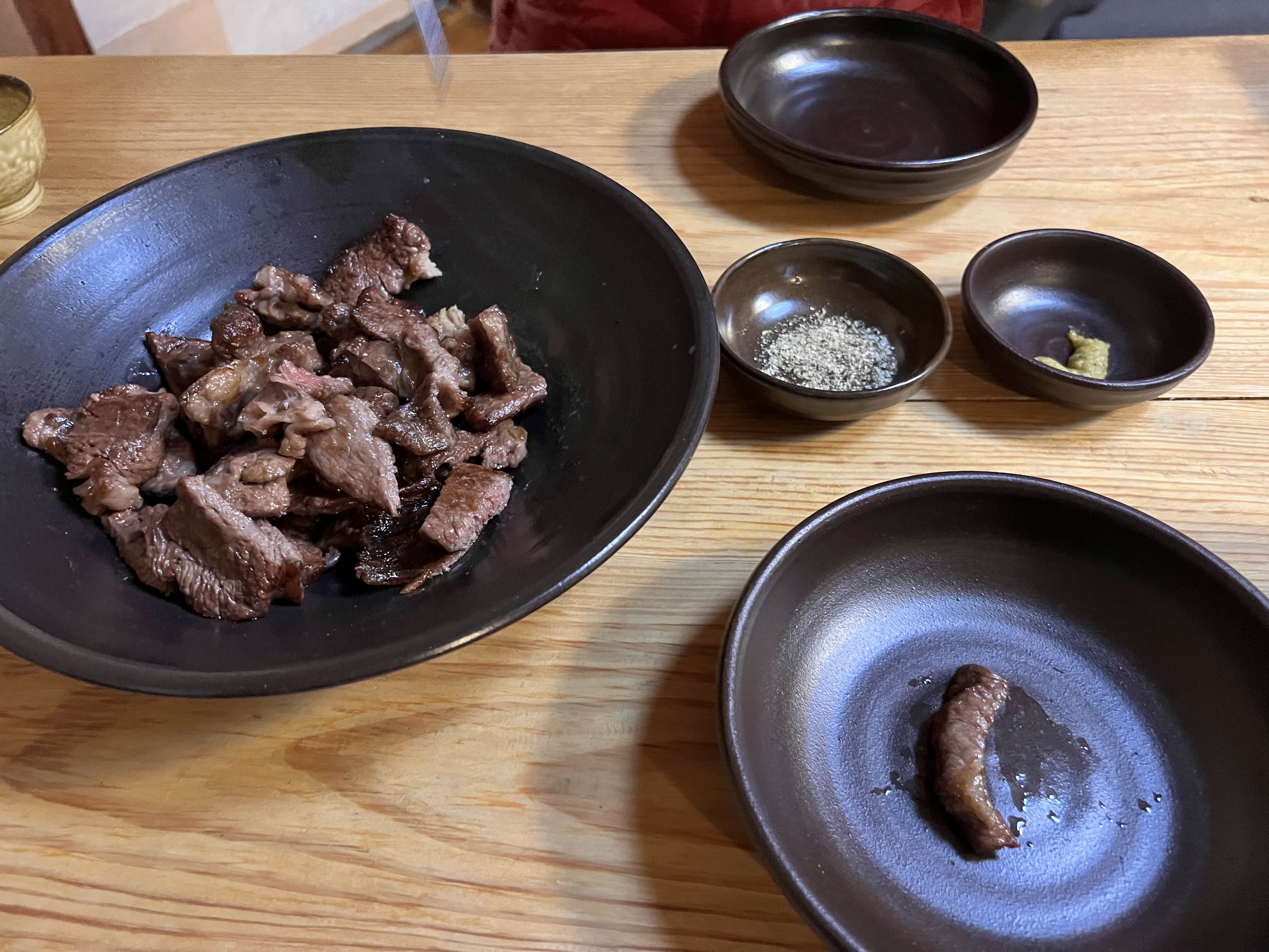 반찬이 나왔는데, 양배추 김치와 고구마줄기 무침이 너무 맛있어서 놀랐다.
