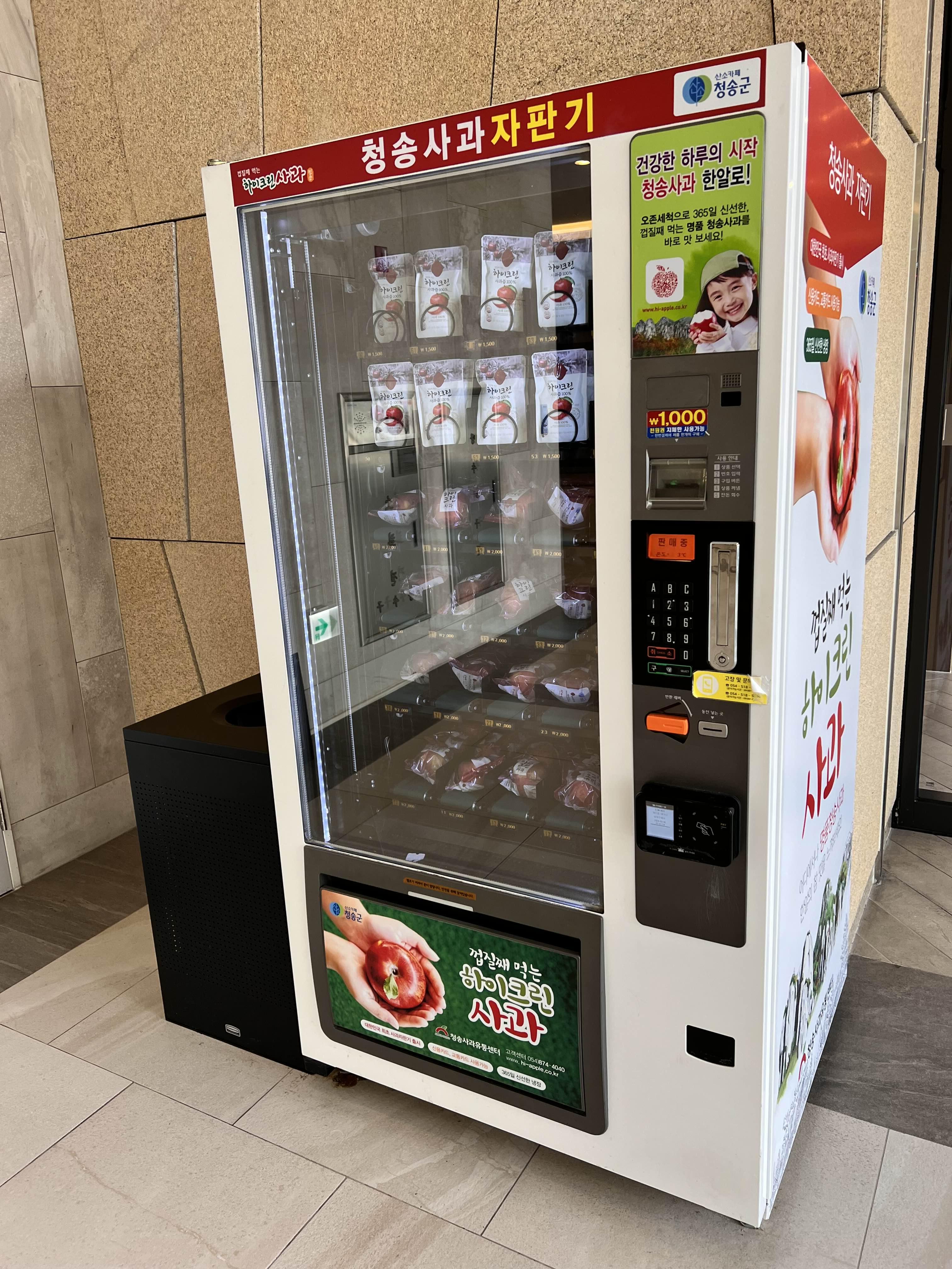 솔샘 온천 입구의 청송 사과 자판기