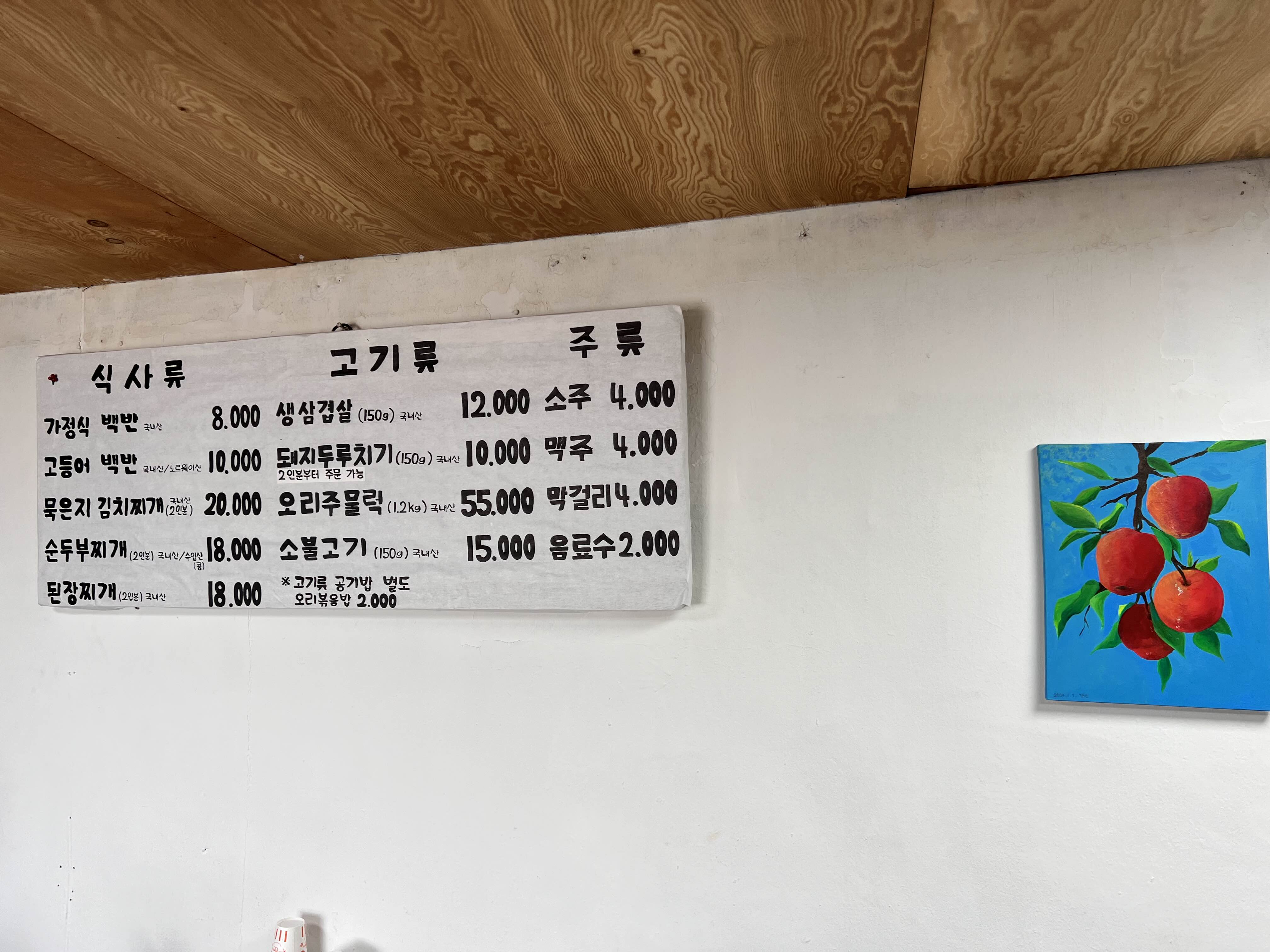청송이 백자로 유명하다. 다른 도기와 달리 흰 돌을 깨서 자기를 만드는데, 그 공예터 근처에 있는 동네 식당이다.