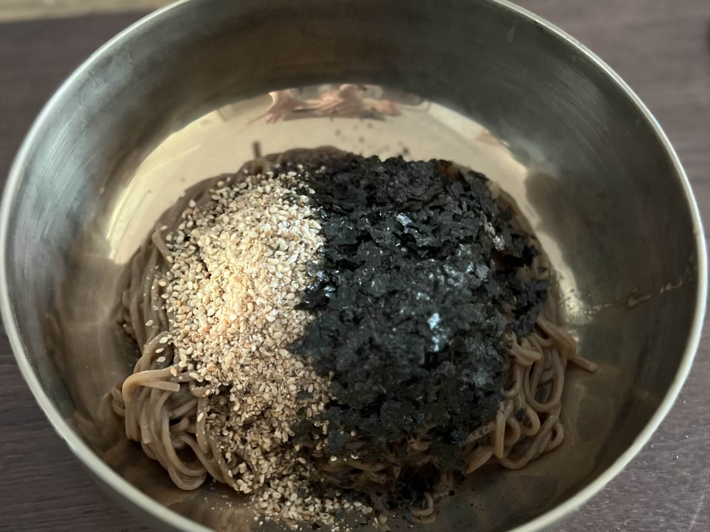 이건 100% 순메밀 일본수입면인데 부드럽고 고소하다.