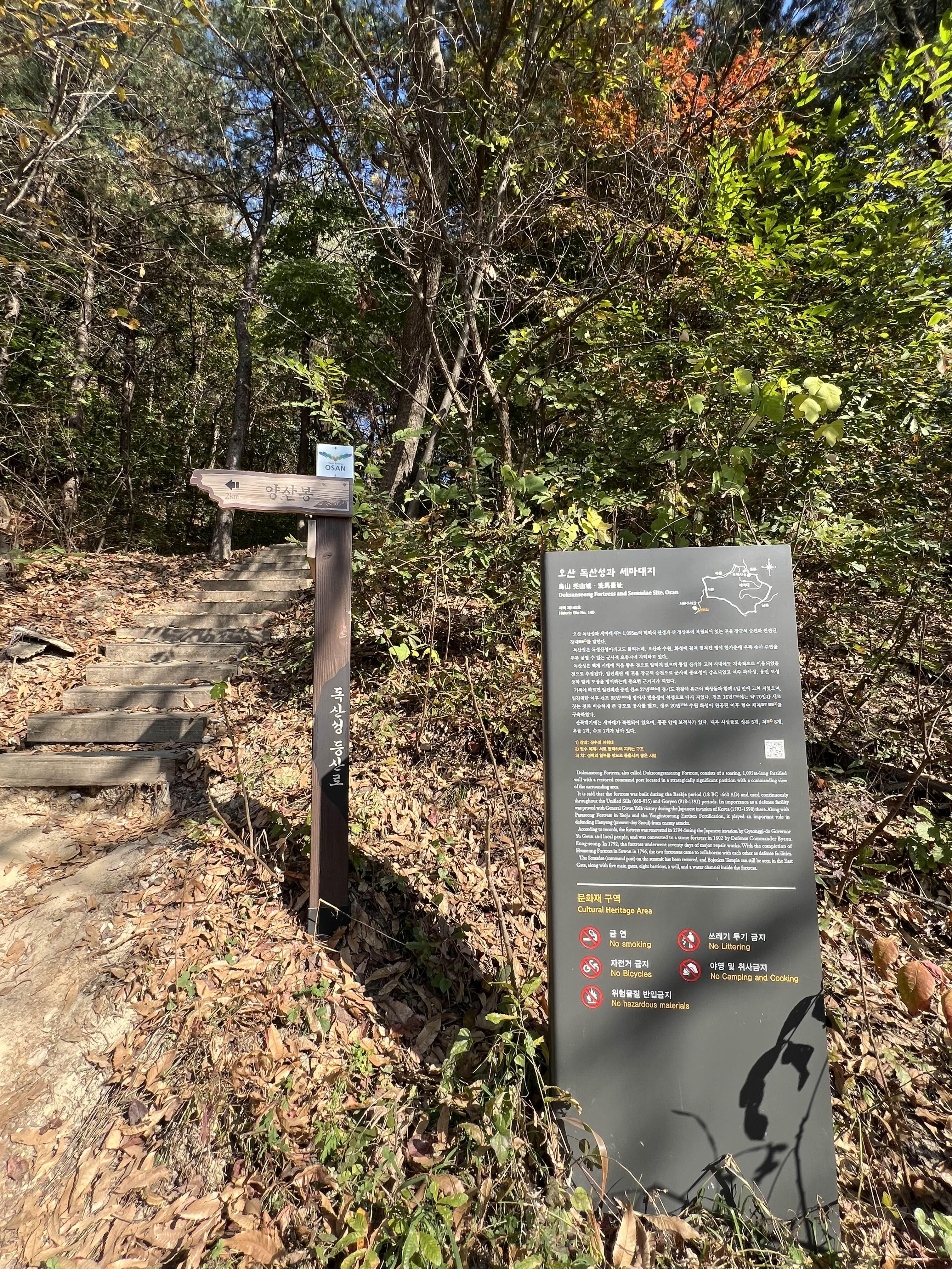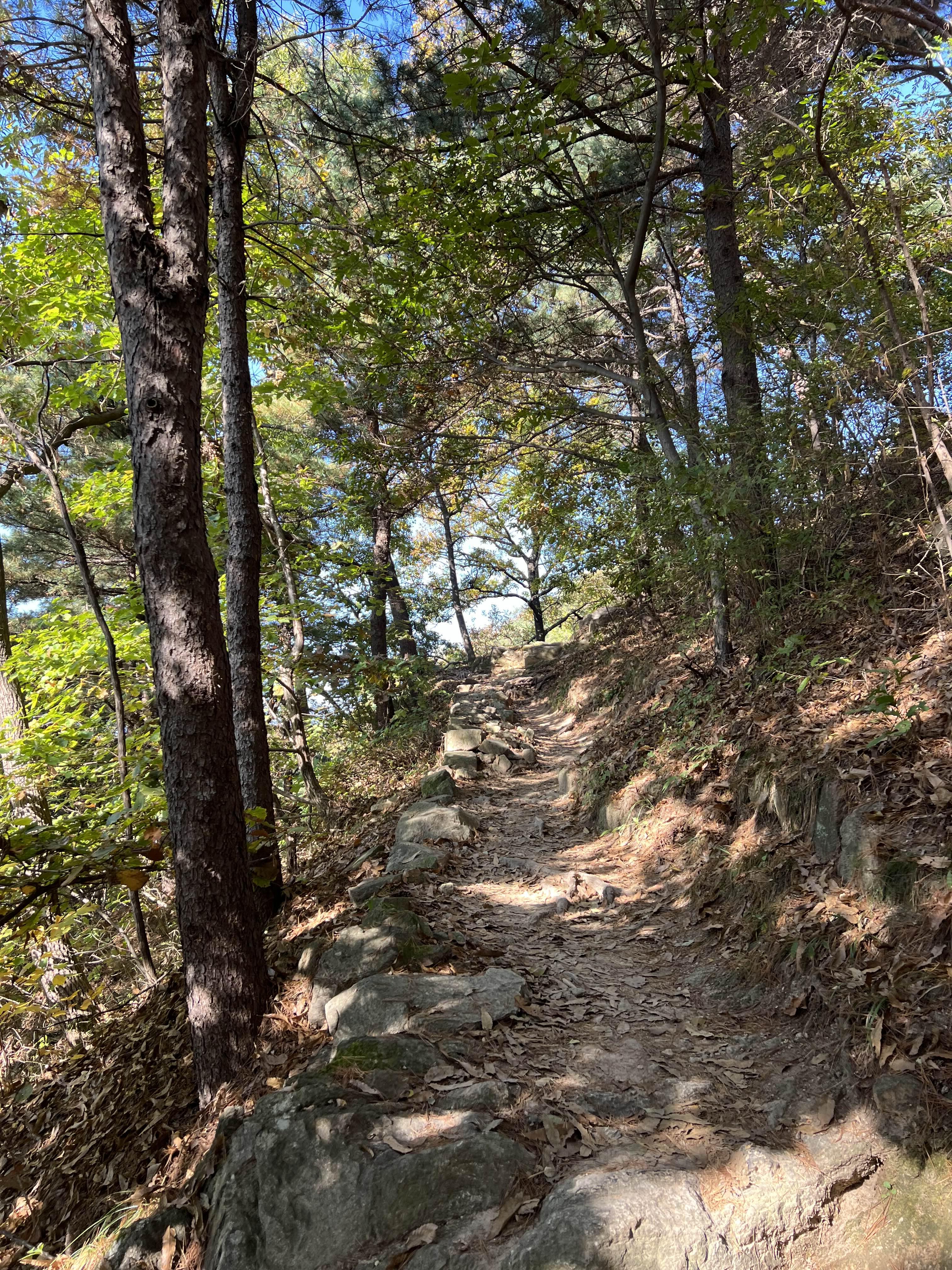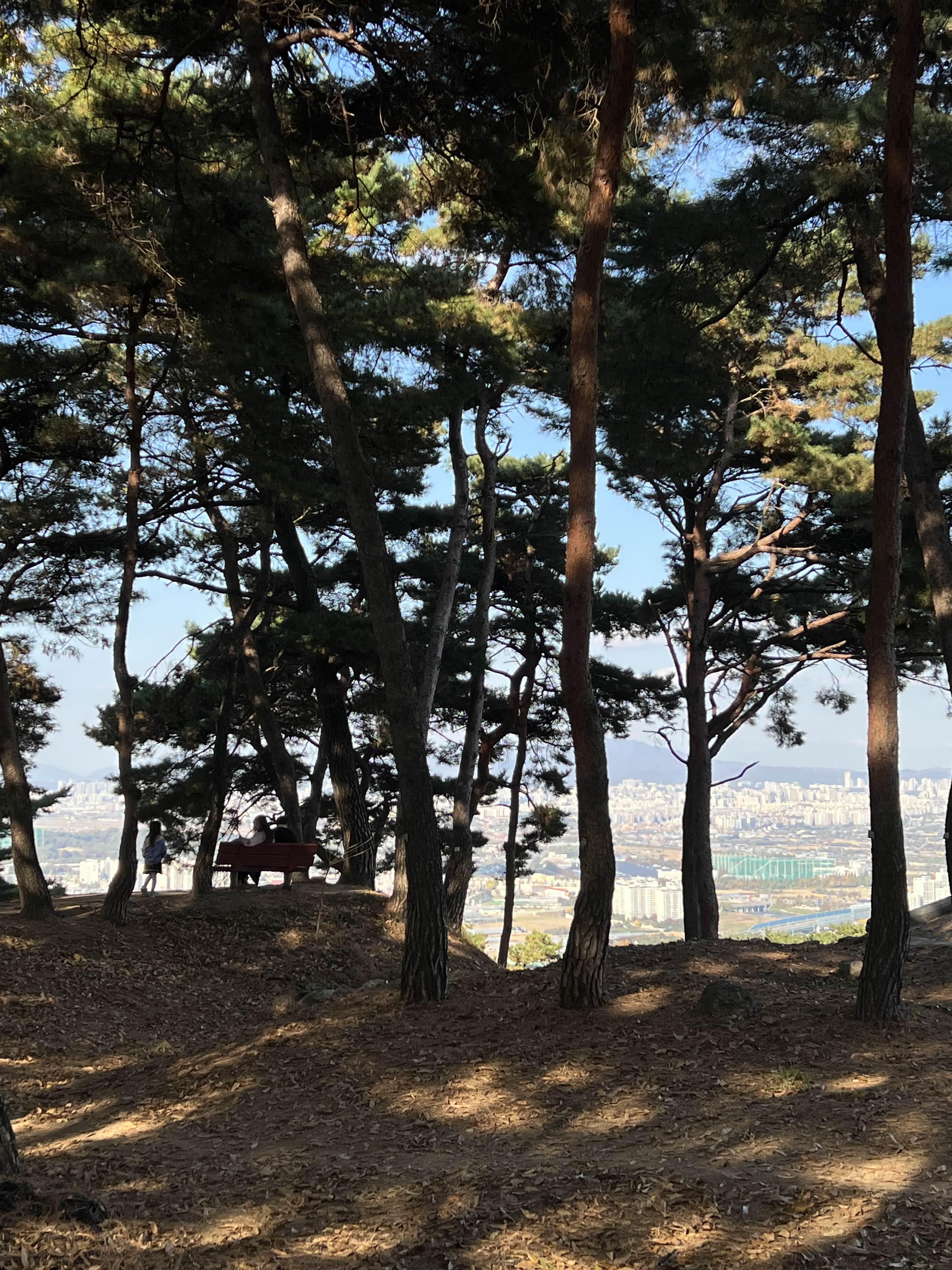 높은 곳에 있어서 올라 가면 주변이 다 보이고 10분 걸었을 때부터 조망이 터져서 정말 가슴이 트이는 곳이다.