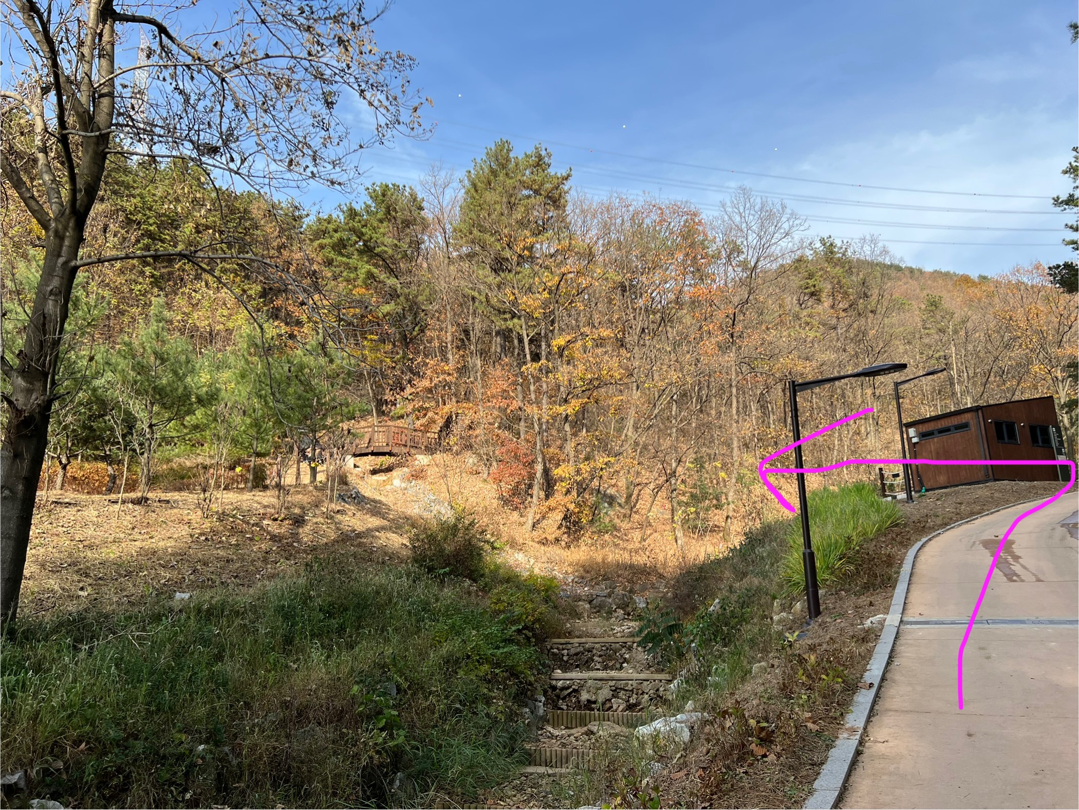 걷다 보면 소화기가 하나 나오는데 여기서 왼쪽이다