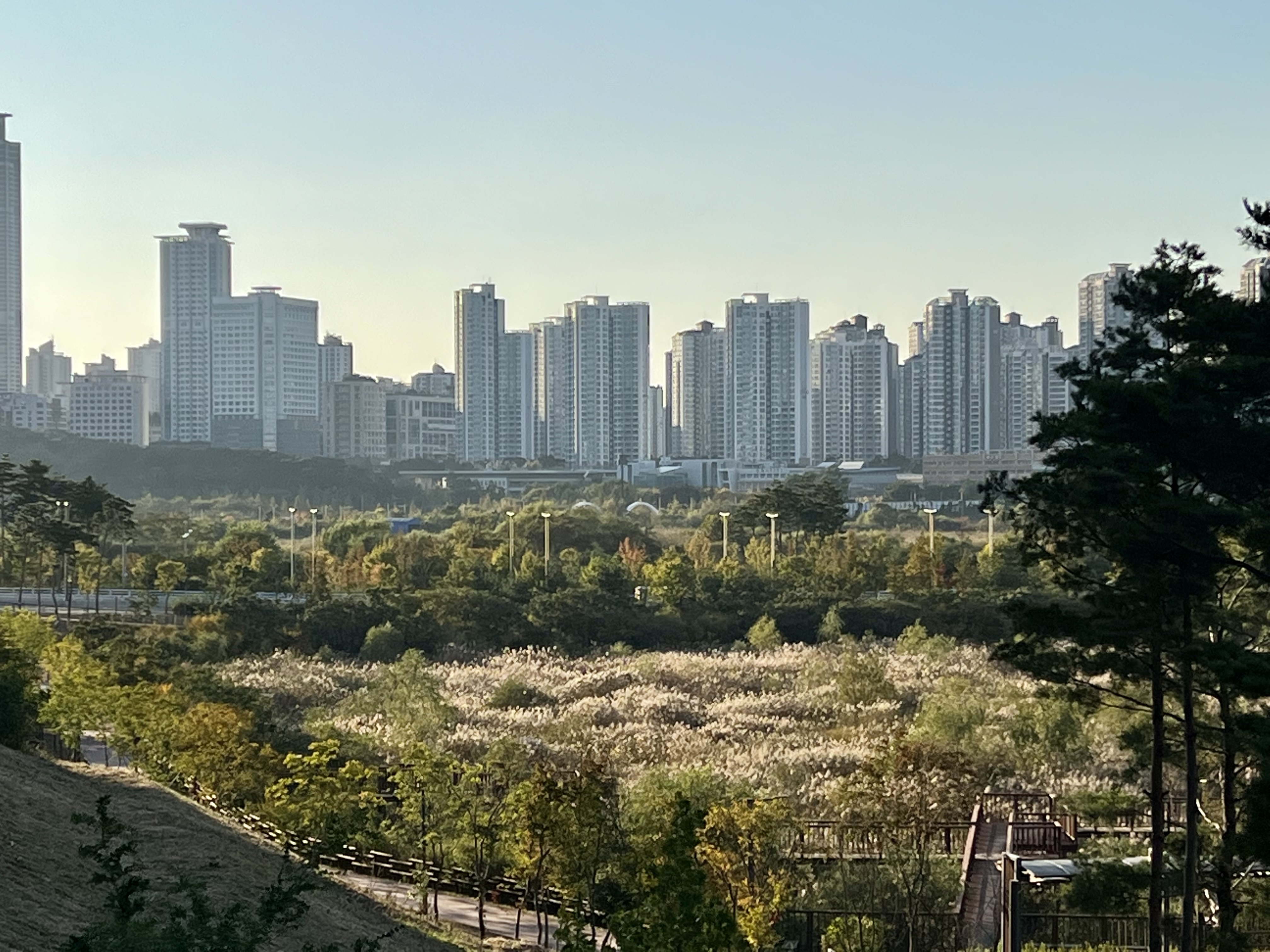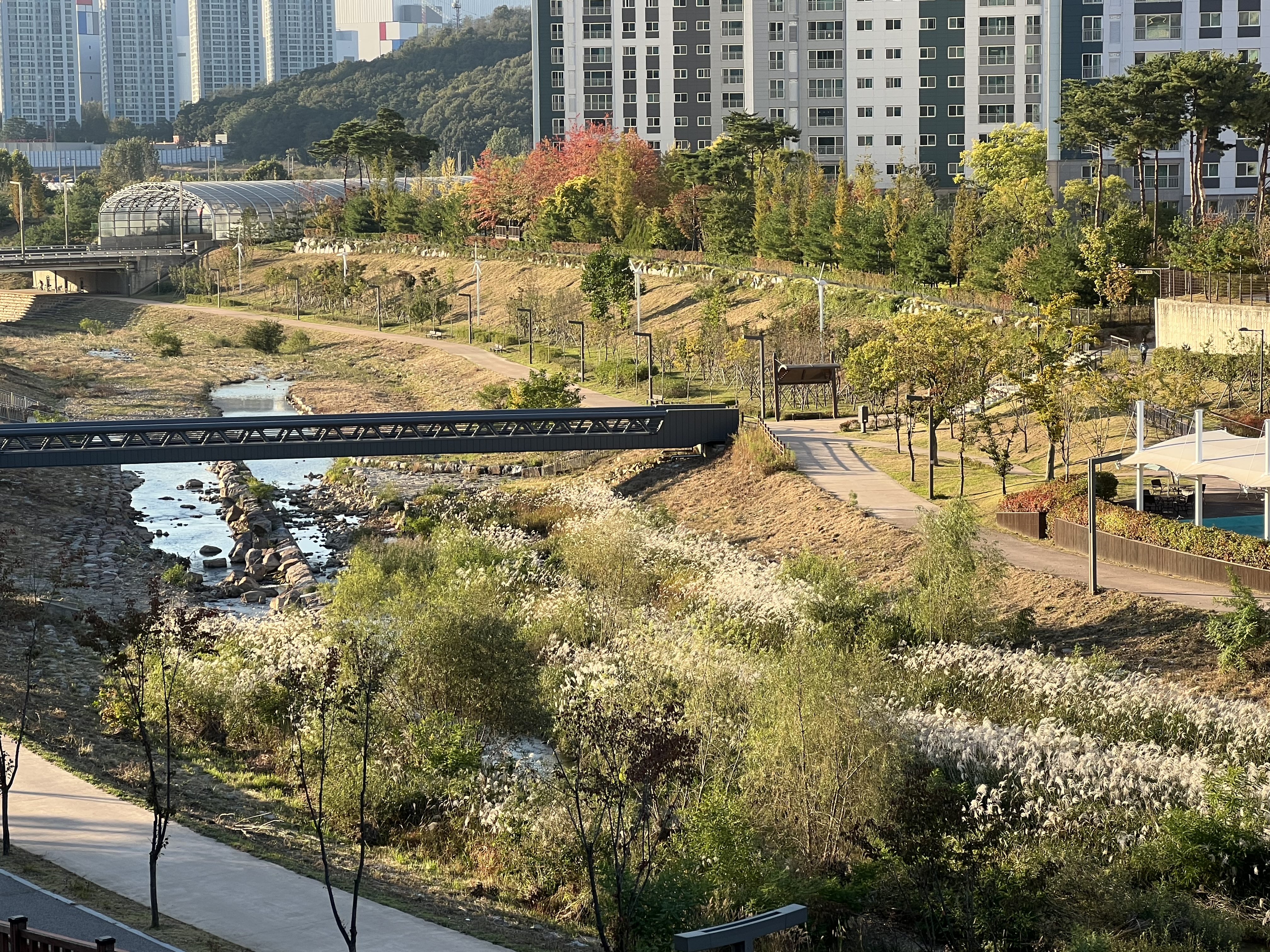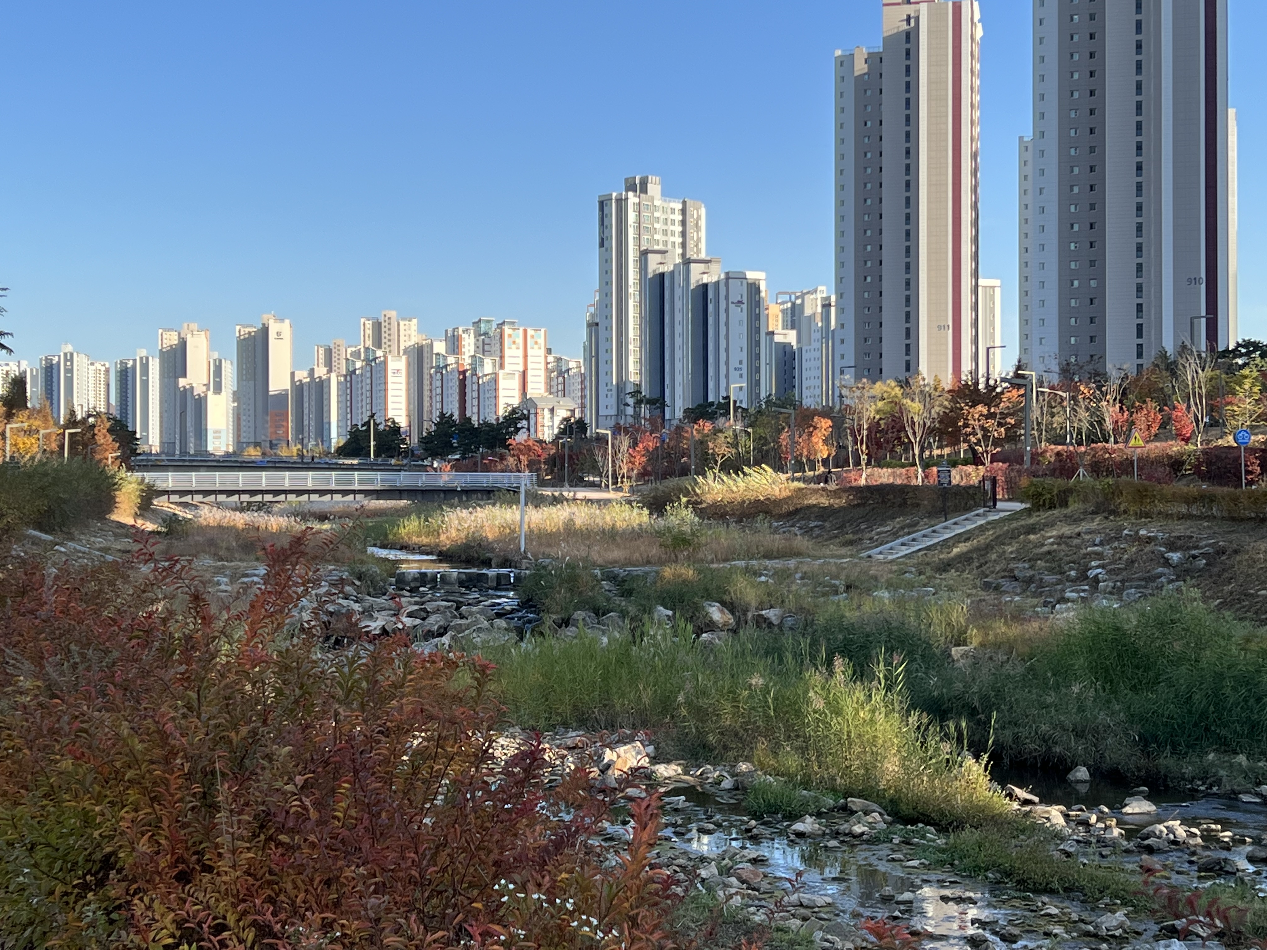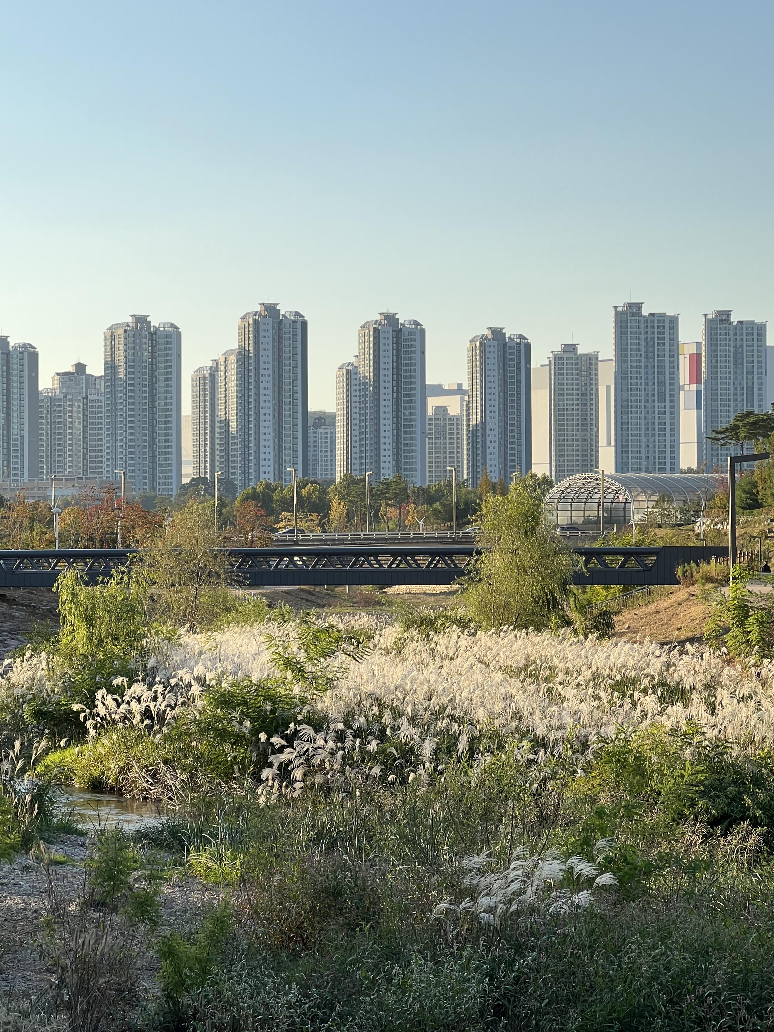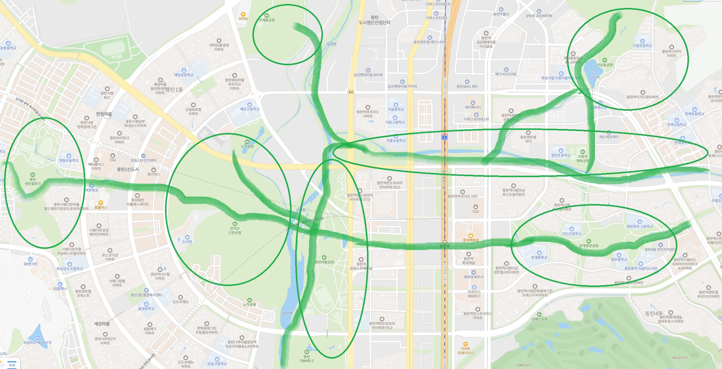 도시 사이에 하천과 공원이 있으니 보기 좋구먼