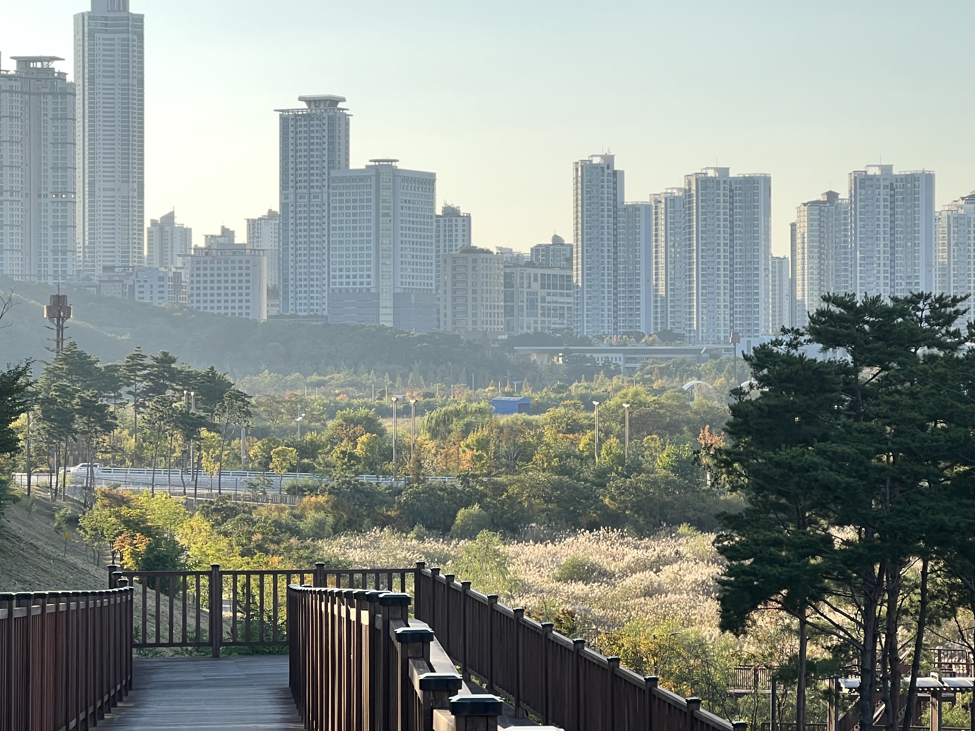 광역비즈니스컴플렉스(광비콤) 앞으로 데크로 올라가 본다. 훨씬 풍경이 좋다.