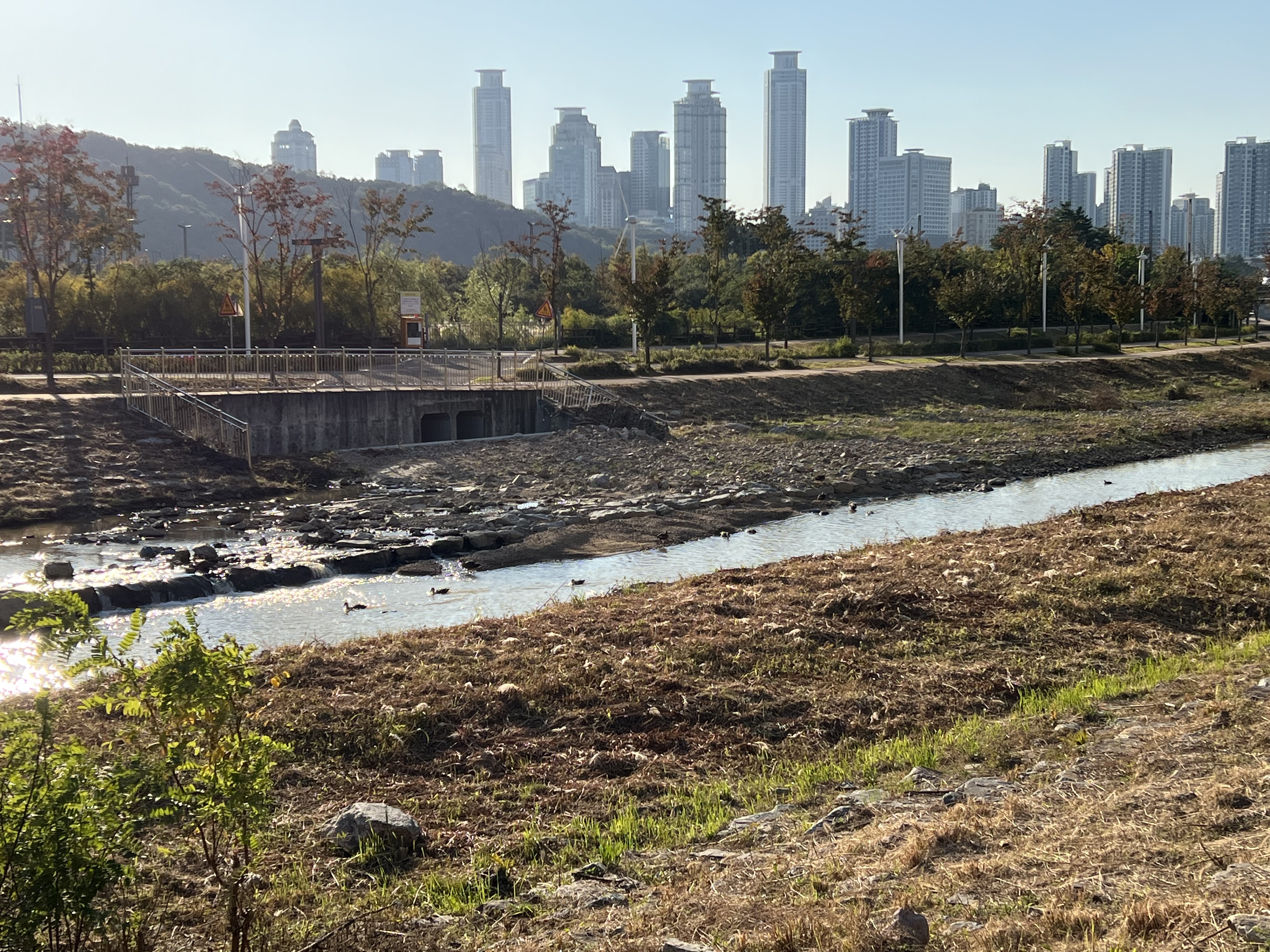 서쪽으로 조금만 걸으면 경부직선화(경부지하화) 공사 마무리하느라 아직 천 정리가 덜 된 구간이 나온다.
