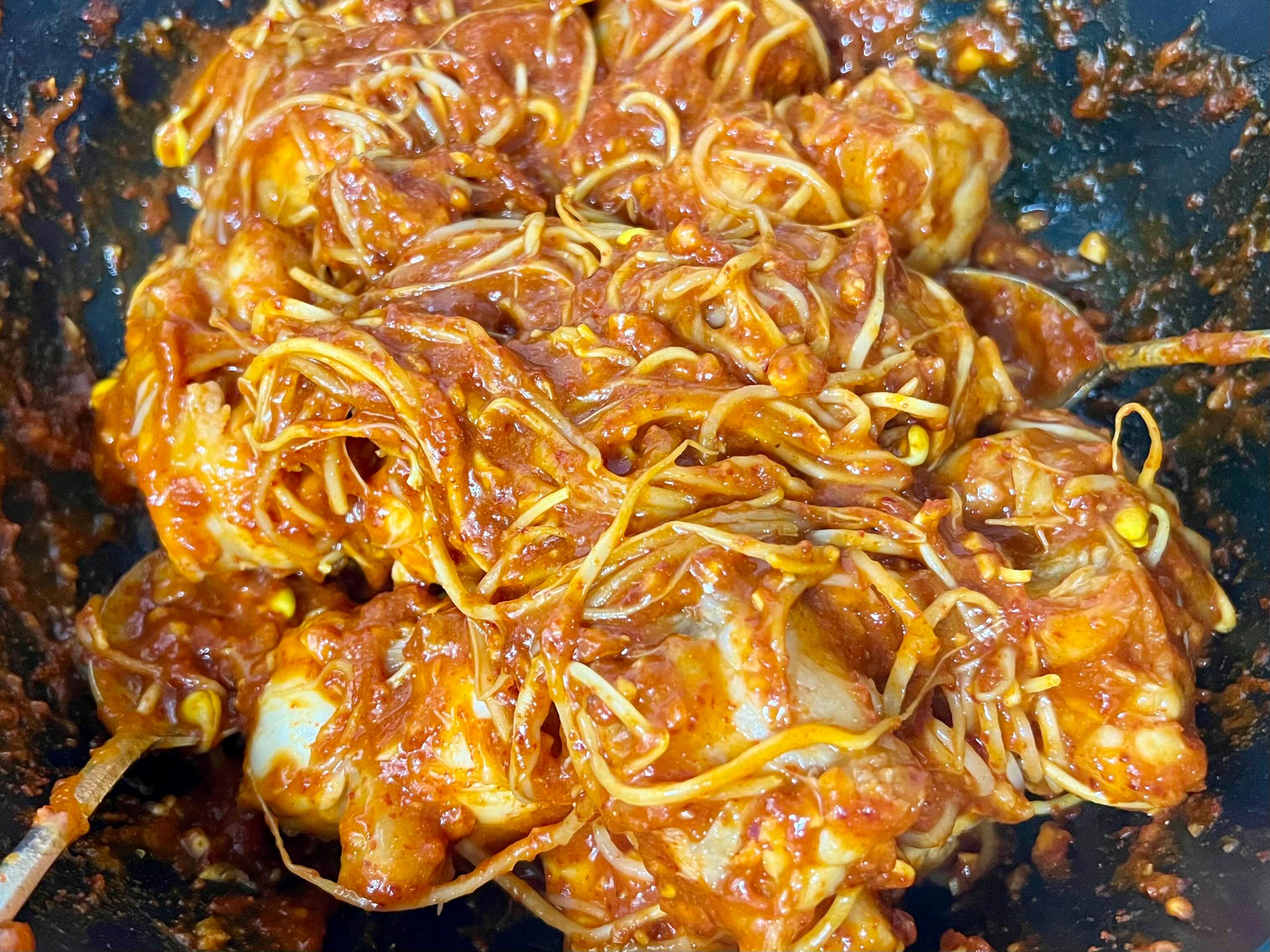 콩나물이 숨이 안 죽은 것 아닌가? 싶다가도 소스랑 섞기 시작하면 다 잘 섞이고 숨이 죽는다.
