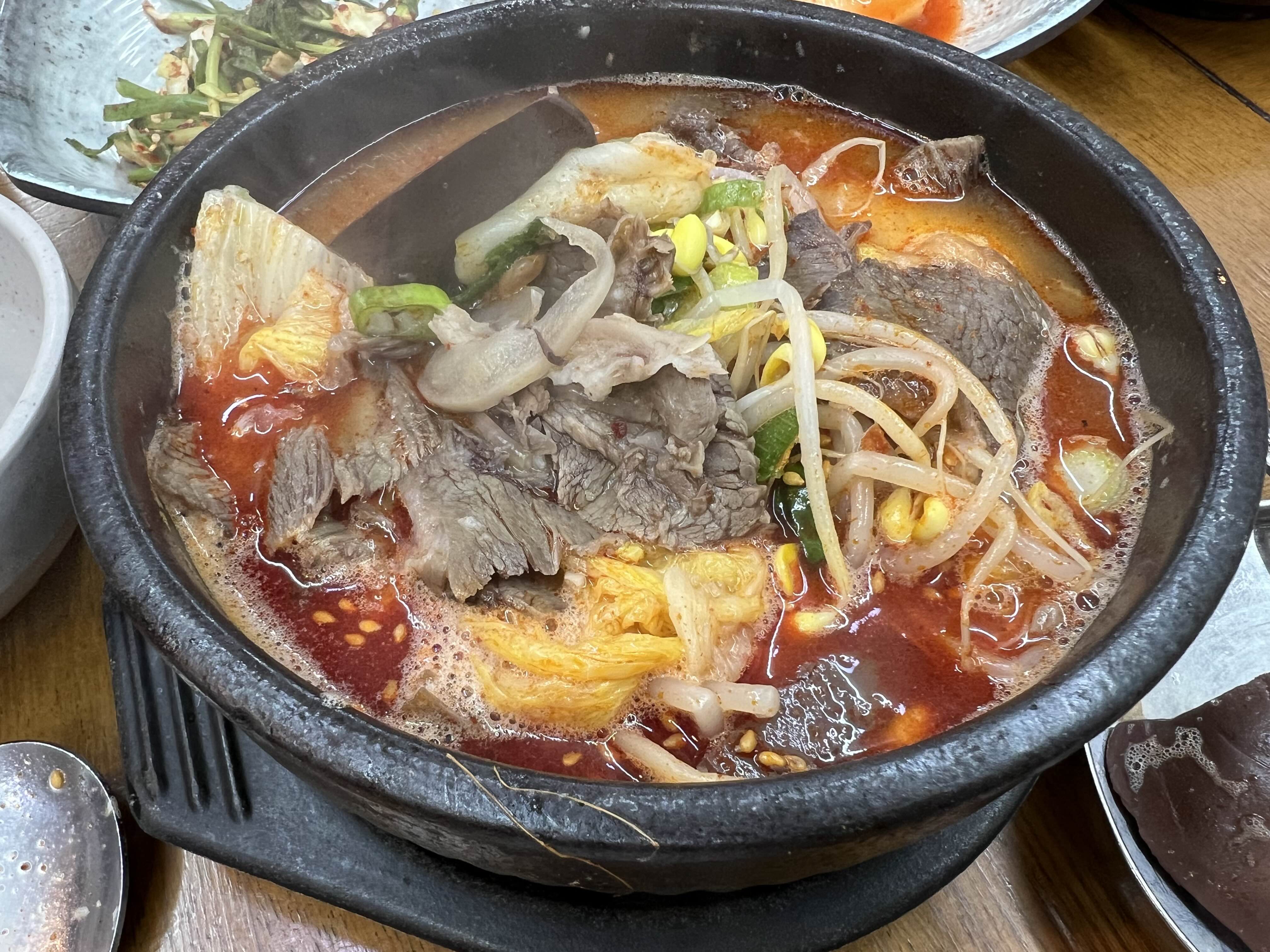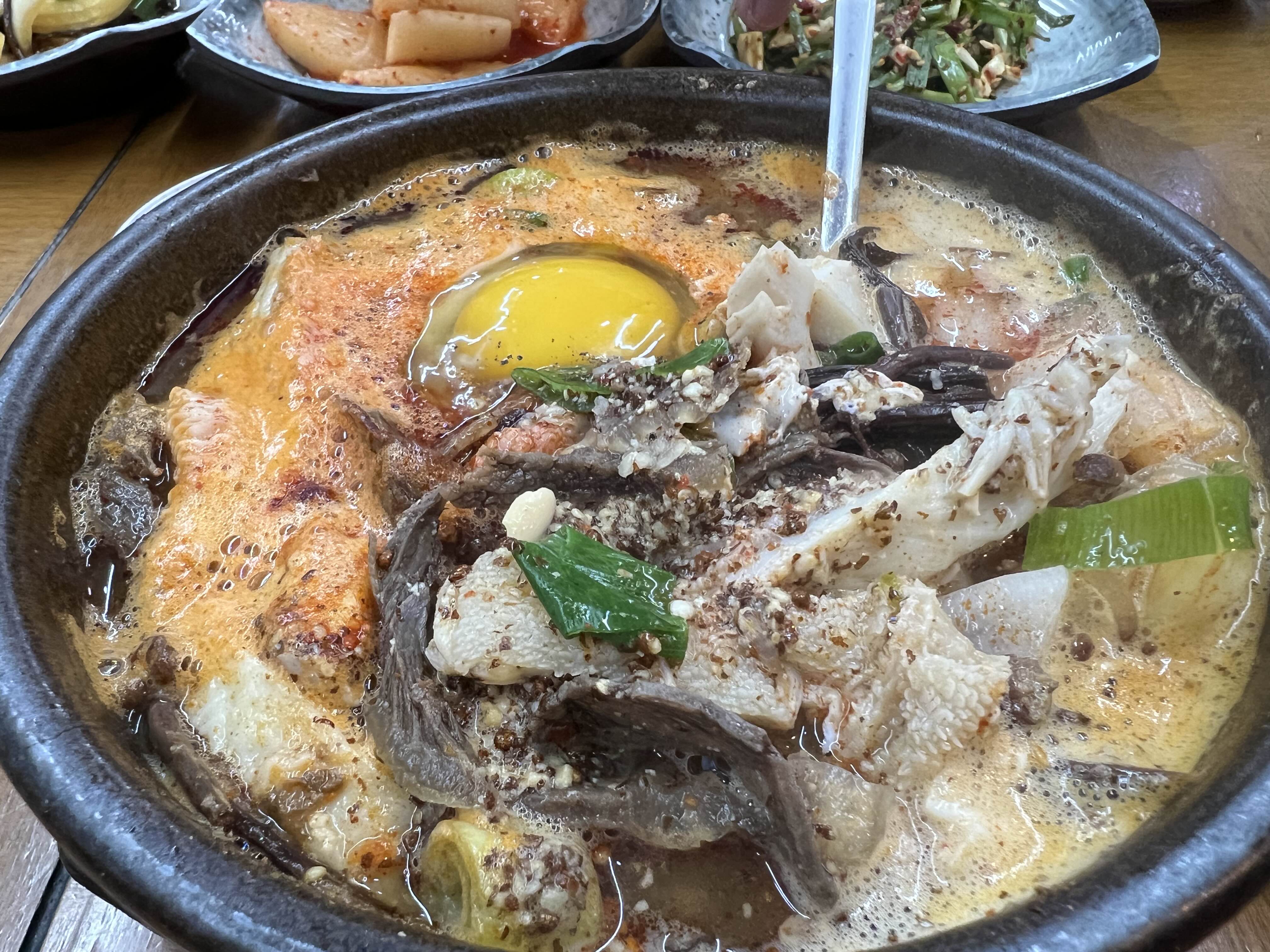 밥을 다 먹어갈 즈음 뚝배기가 조금 식으니 국물맛이 더 들적지근하게 이도저도 아닌 맛이 된 것 같아 멈추었다.