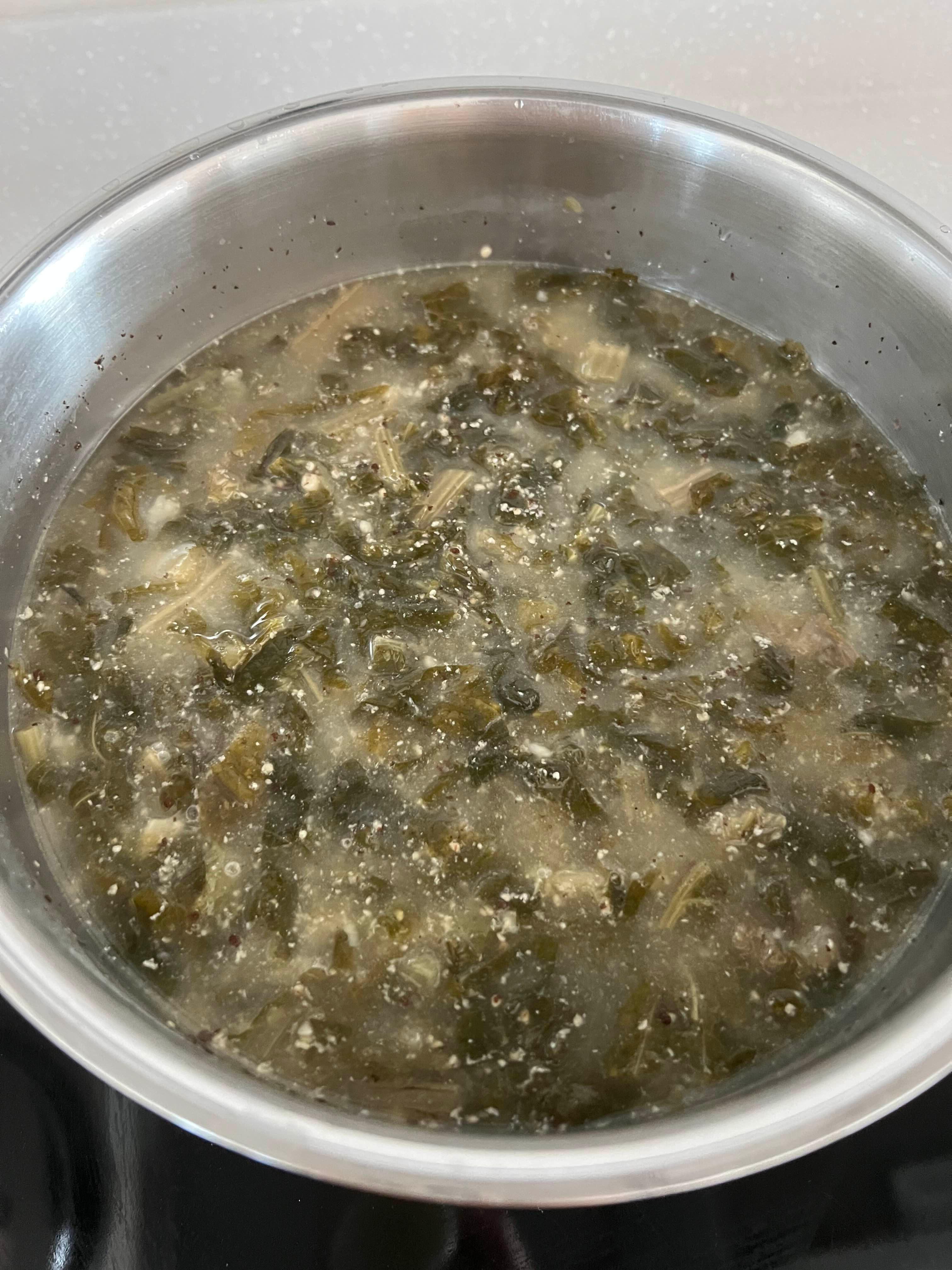 시래기를 잘 불리고 끓여 껍질을 깐다.