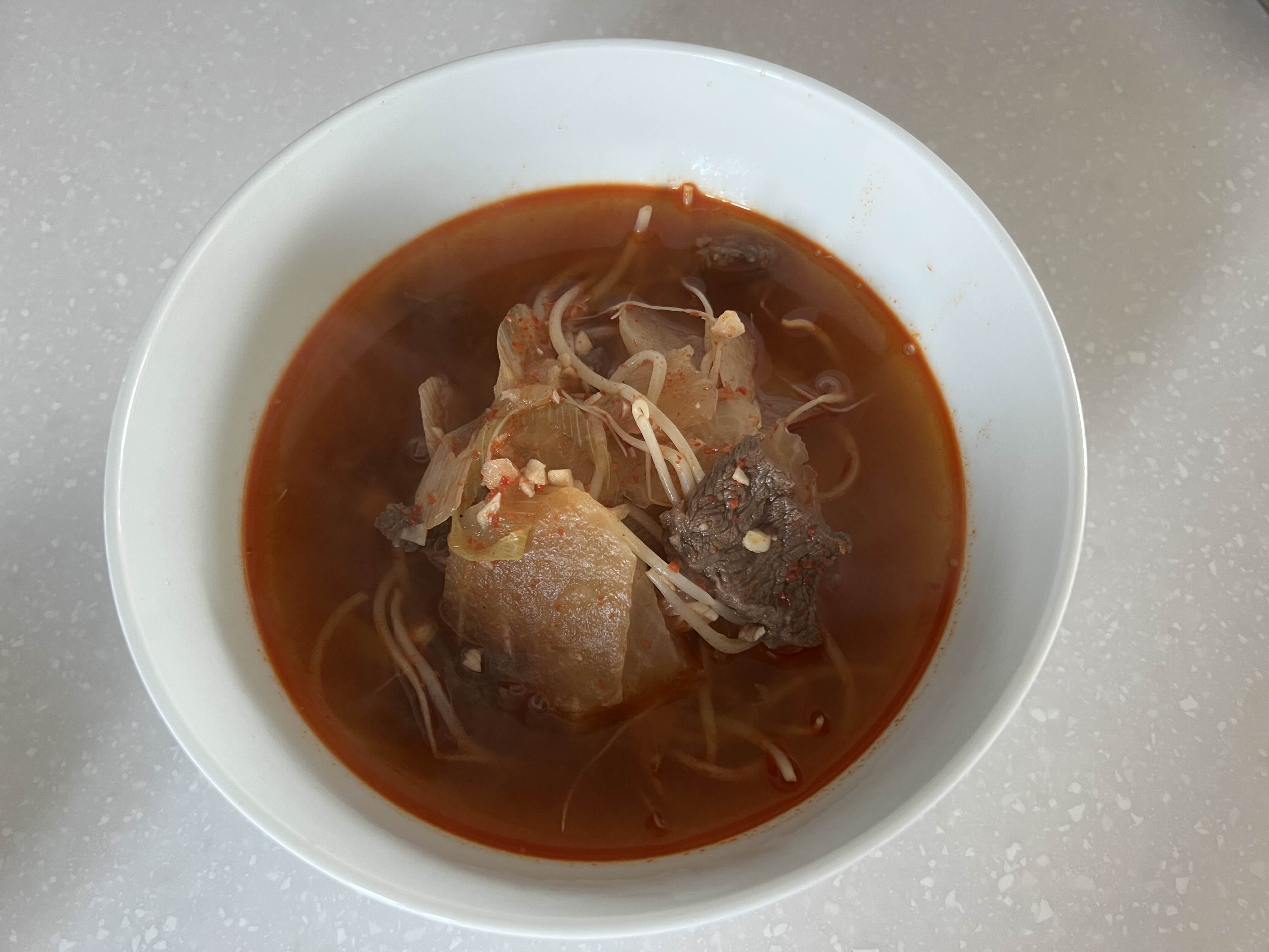 육수는 따듯한 채로 넣어야 하고, 아주 옅은 멸치다시여야 함