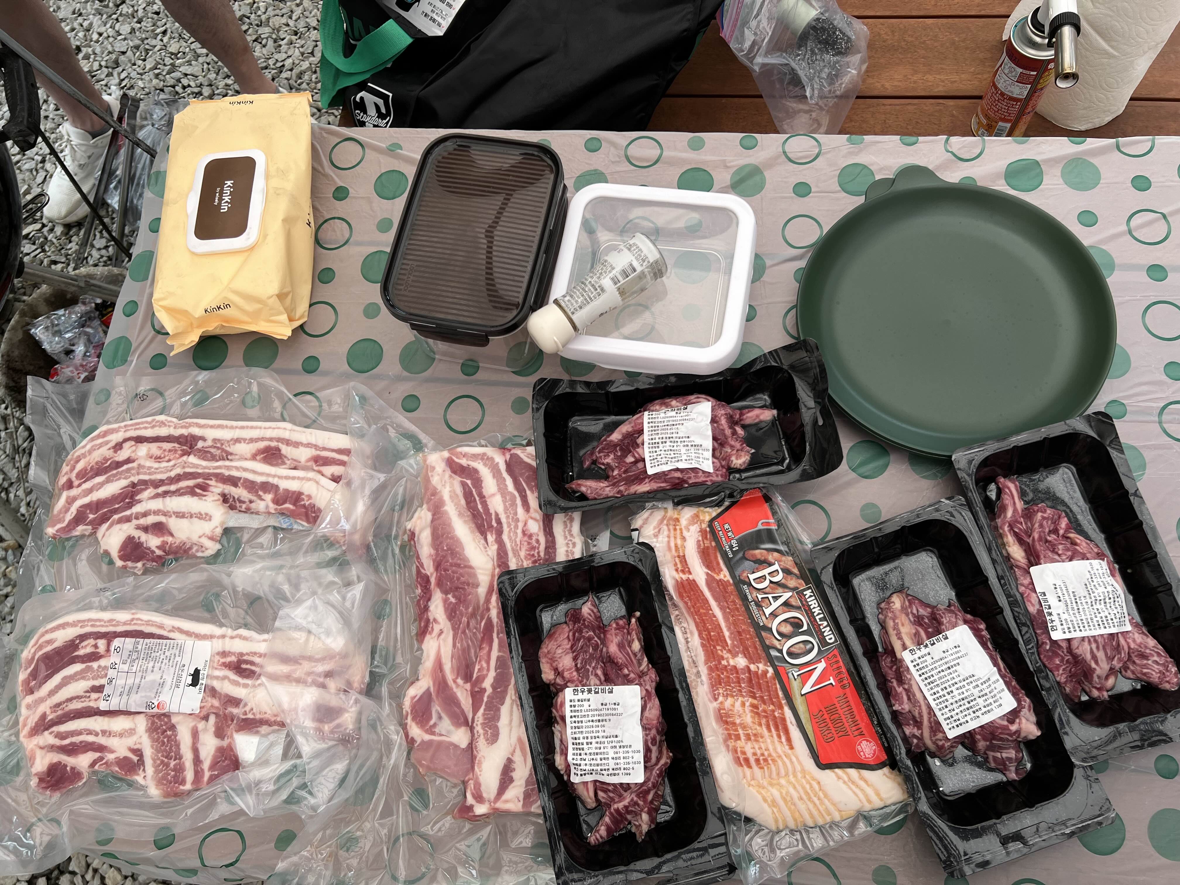 한우 꽃갈비살, 삼겹살, 베이컨