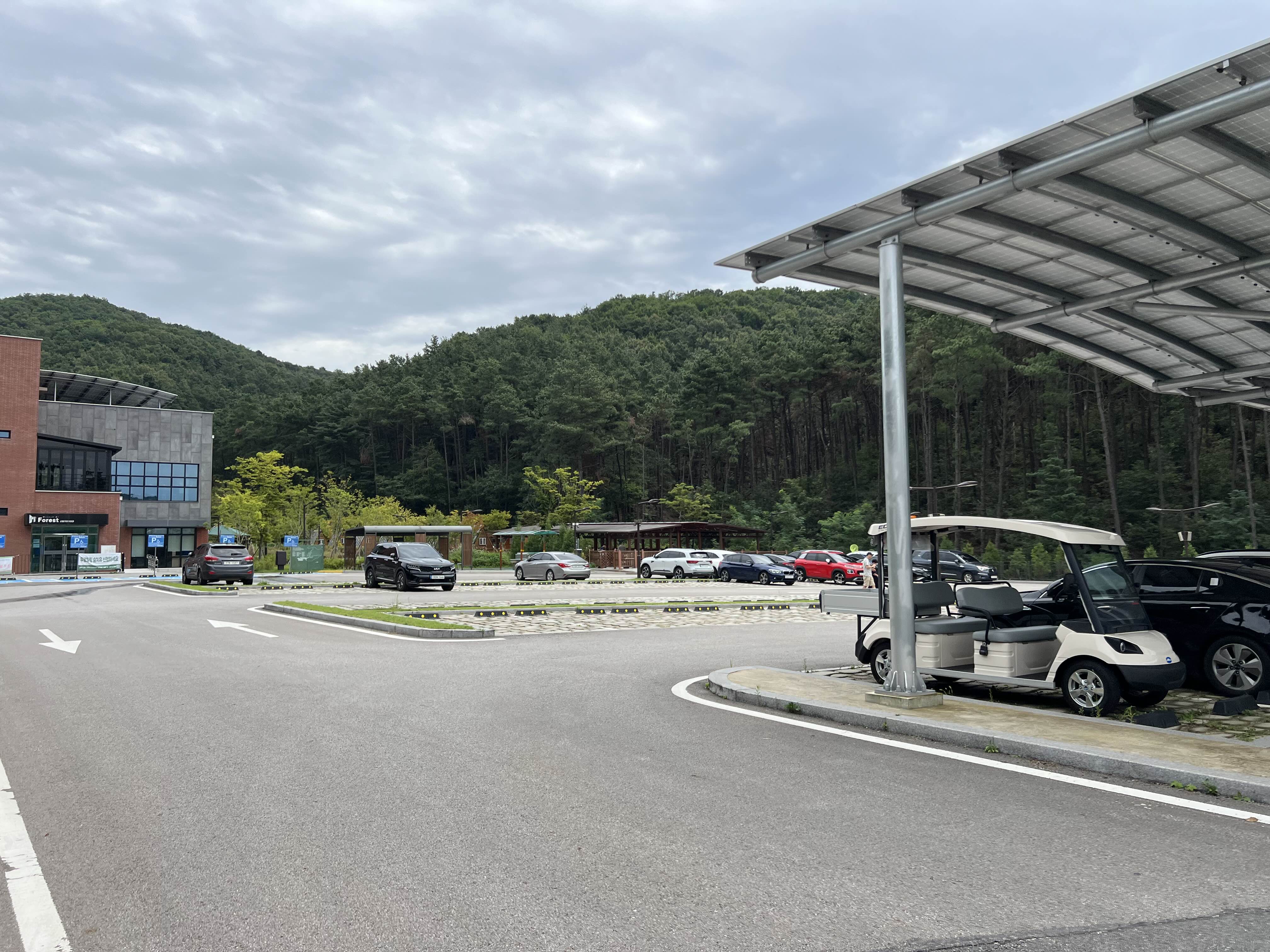 바로 앞에 주차장이고 주차장 위가 바베큐존이다.