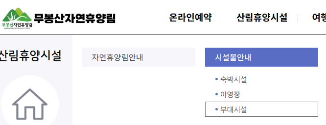 사이트에 들어 가서 '온라인 예약'에서 '부대 시설'을 클릭하면 된다.