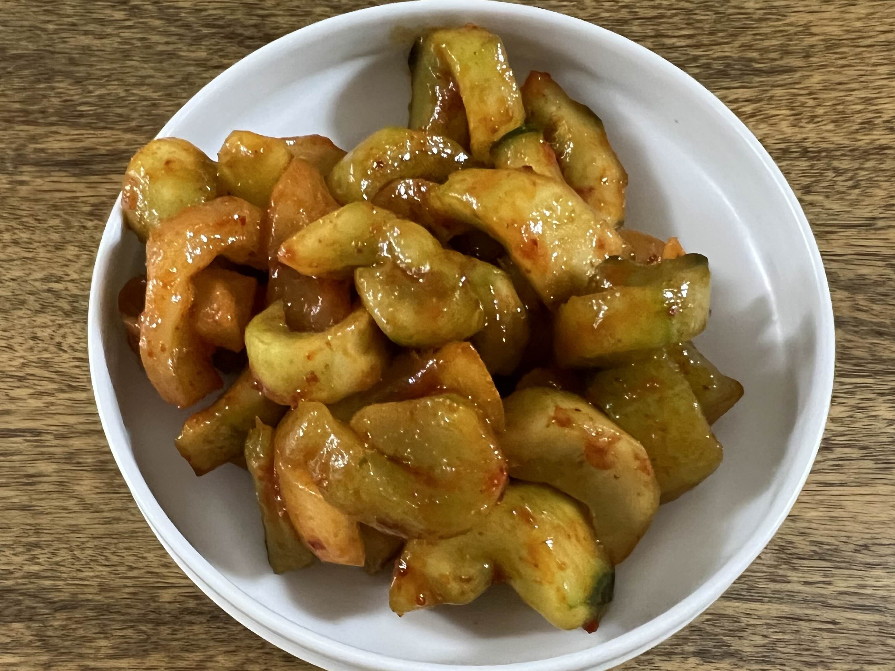 엄마와 아빠가 오이와 노각 딴 것을 잔뜩 주셔서 일단 물엿에서 수분 빼고, 소금간 좀 해서 초고추장 아주 약간해서 무쳤다.