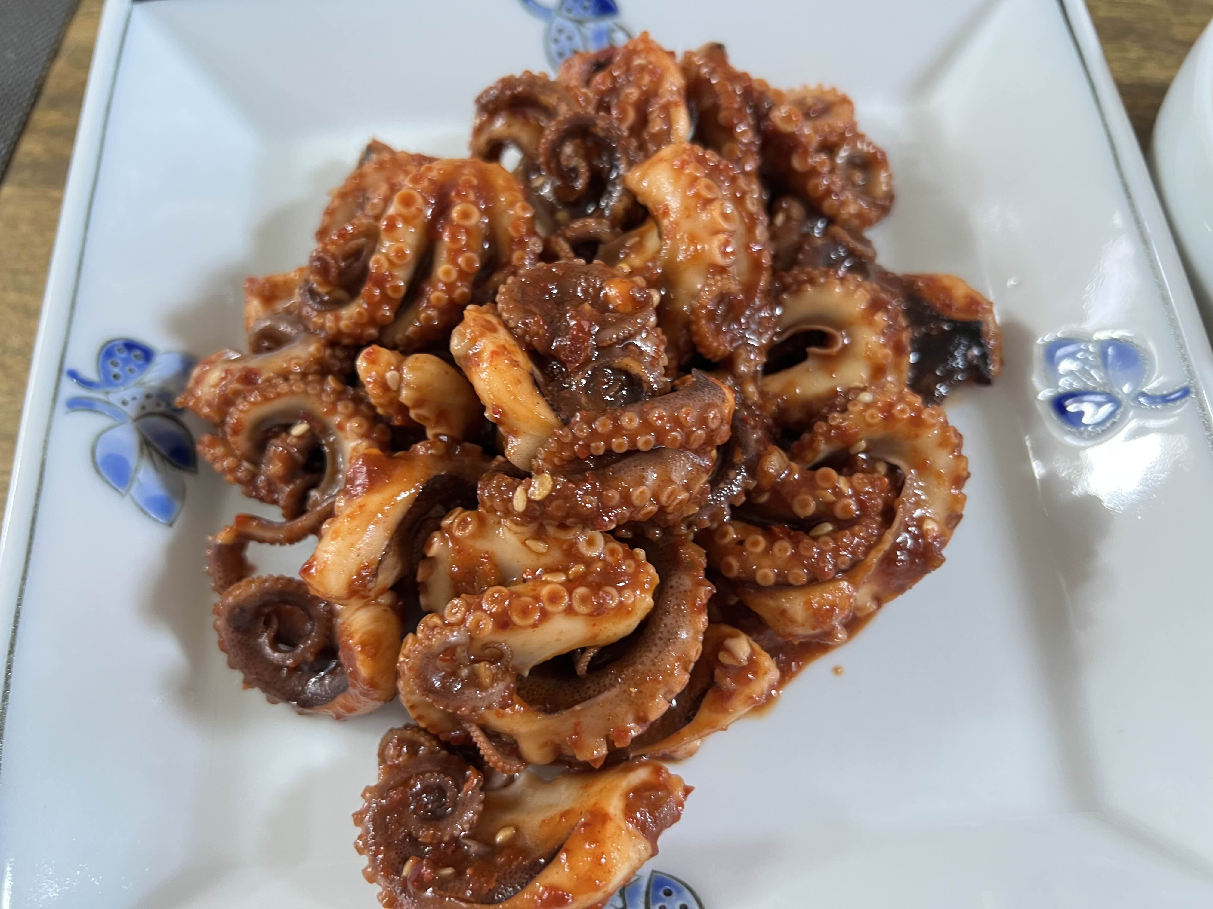 주꾸미가 싱싱한 게 들어 와서 오랜만에 볶음을 했다. 한 번 데쳐서 볶을 때 물기가 없게 했다.