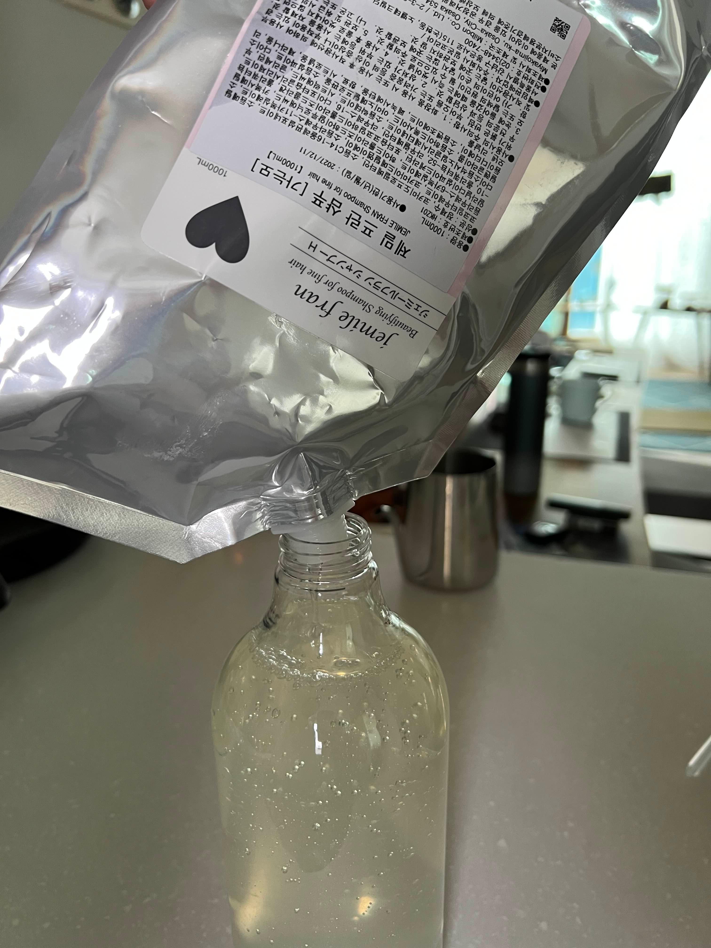 밀본 그랜드 링케이지 벨루어럭시 샴푸 1.8리터, 밀본 제밀프란 하트 샴푸 1리터를 쓰는데