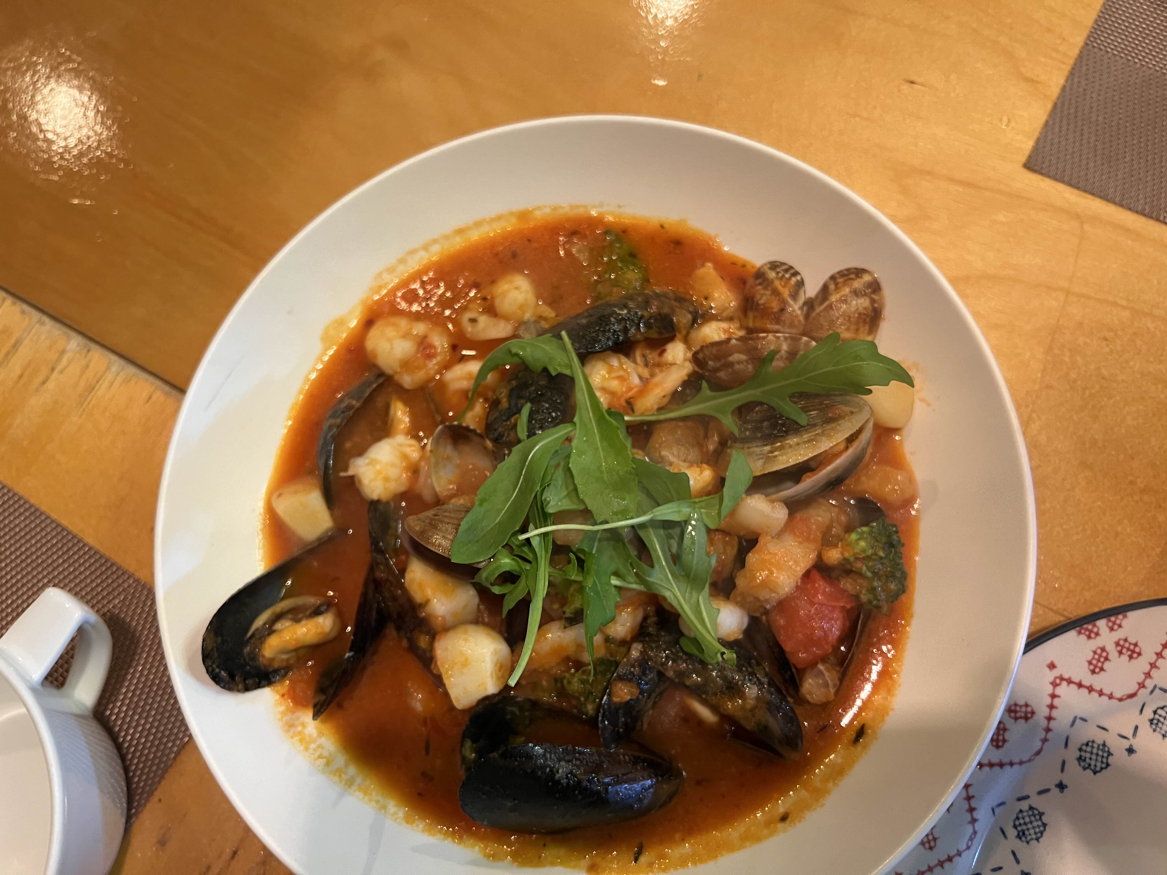 치오피노는 역시 흰살 생선살이 화룡정점인 것 같다. 토마토와 채소들, 조개도 모두 신선하다.