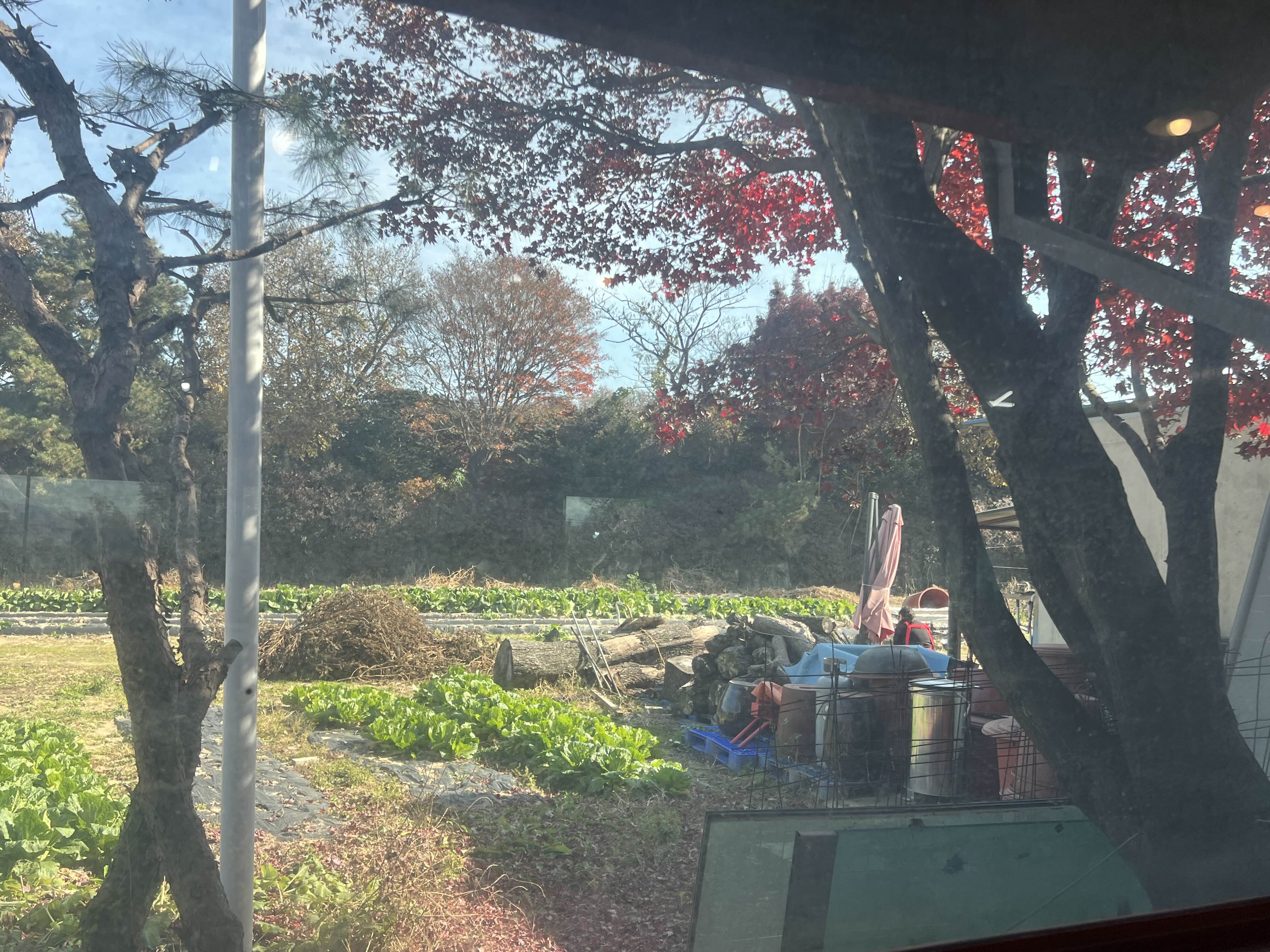 옆 유리창 너머로 보니까 밭에 배추가 가득이다.
